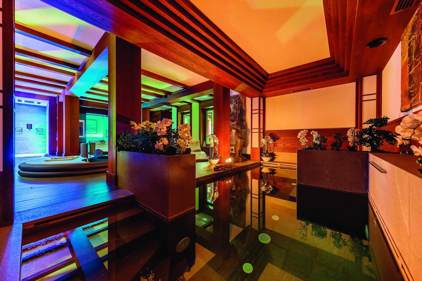 The luxurious villa is equipped with the most modern technologies with wellness and relaxation services, which allow its guests to enjoy a unique and exclusive experience. The devices used are ecological ensuring maximum respect for the environment. The luxurious and spacious chalet has been designed using a harmonious blend of the highest quality materials. The structure is characterized and enriched by unique and particular architectural details. Developed over four floors, the chalet includes a spa area with sauna, heated swimming pool, bathroom and changing room. The property has a large living room, a games room, a soundproofed cinema room with a large screen and a study where guests can be welcomed.