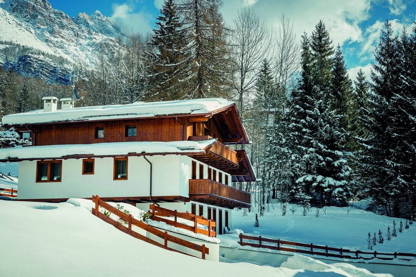 Chalet La Perla is part of an exclusive complex of luxury properties that arise in the beautiful scenery of the Ampezzo Dolomites. L