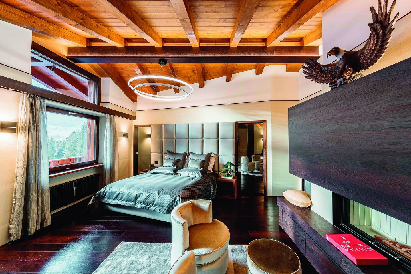 The chalet offers comfortable and luxurious holidays in a perfect and enviable location and is the ideal place thanks to maximum comfort and ultra-luxury services while enjoying a high level of privacy.
