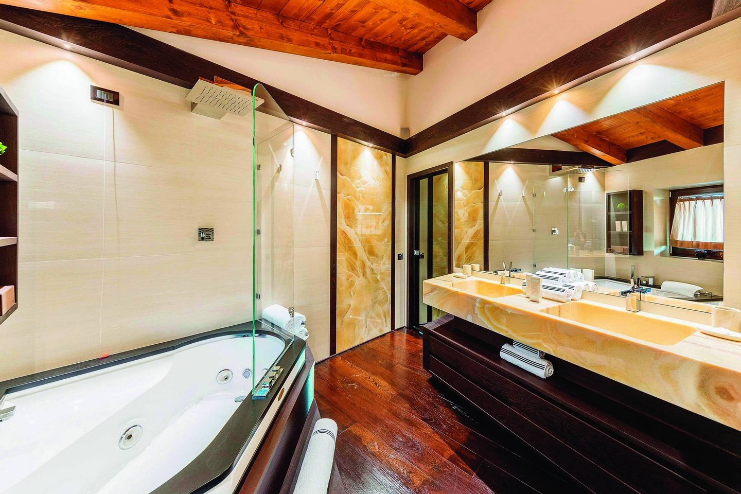 The chalet has a magnificent double bedroom and five delightful double suites with private bathrooms. The chalet offers the best entertainment possibilities. The property, in a strategic position in the center of the cultural, economic and social liveliness of the area, is a window on the world of luxury of the Queen of the Dolomites.