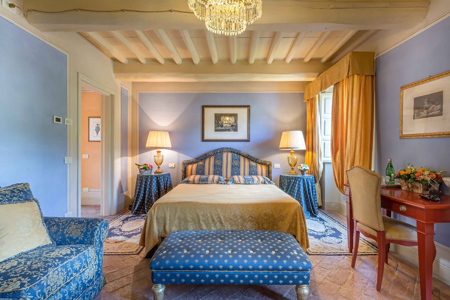 In the 1700s, a Count created a haven in the hills that surround the ancient walled city of Lucca. Today that haven is an elegant and exclusive Tuscan villa immersed in a splendid parkland of ornamental ponds, antique fountains, courtyards, and a