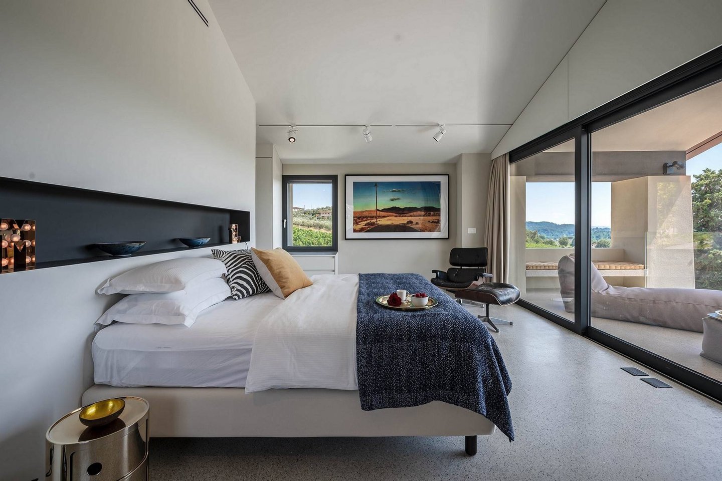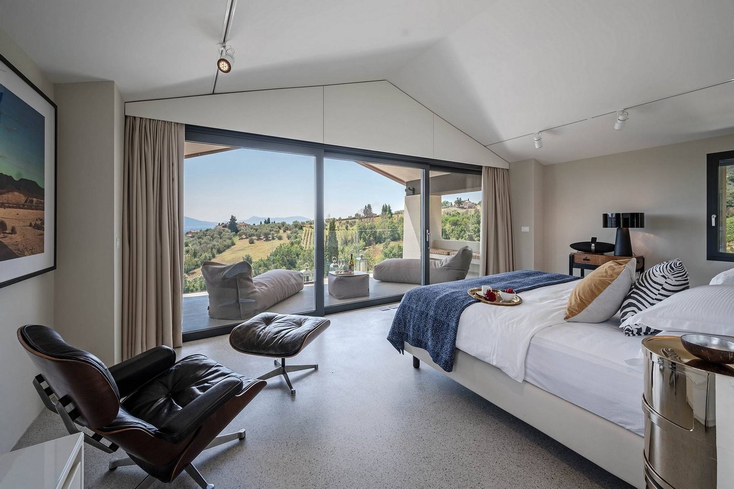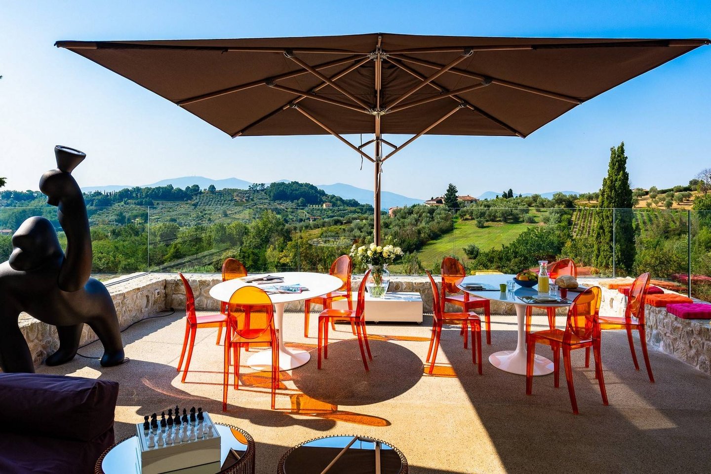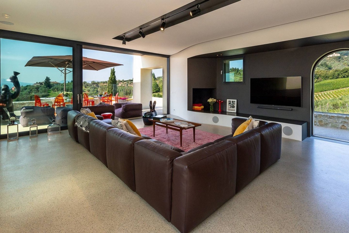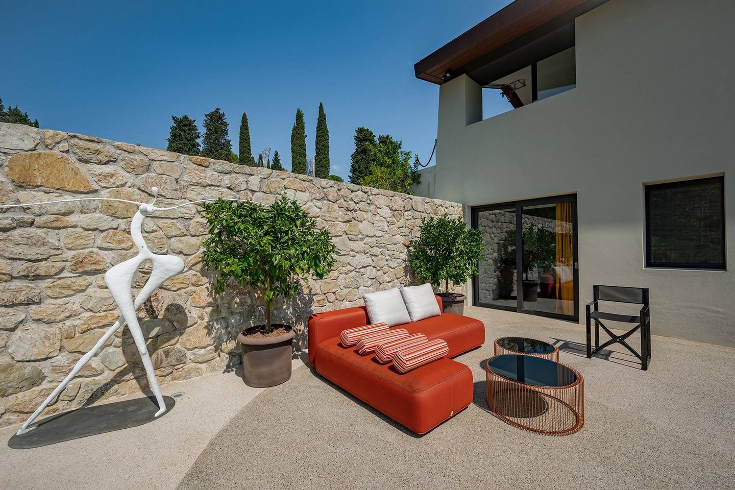 Surrounded by vineyards and olives groves, this strikingly beautiful villa was designed by a noted international architect and designer. Blended with a striking mix between old farm house and modern design featuring large open spaces, stunning views, an incredible 22 m infinity heated pool, a relaxing hydro massage area and beautiful spacious pool area surrounded by sun loungers, this villa offers the maximum of both comfort and modern luxury.