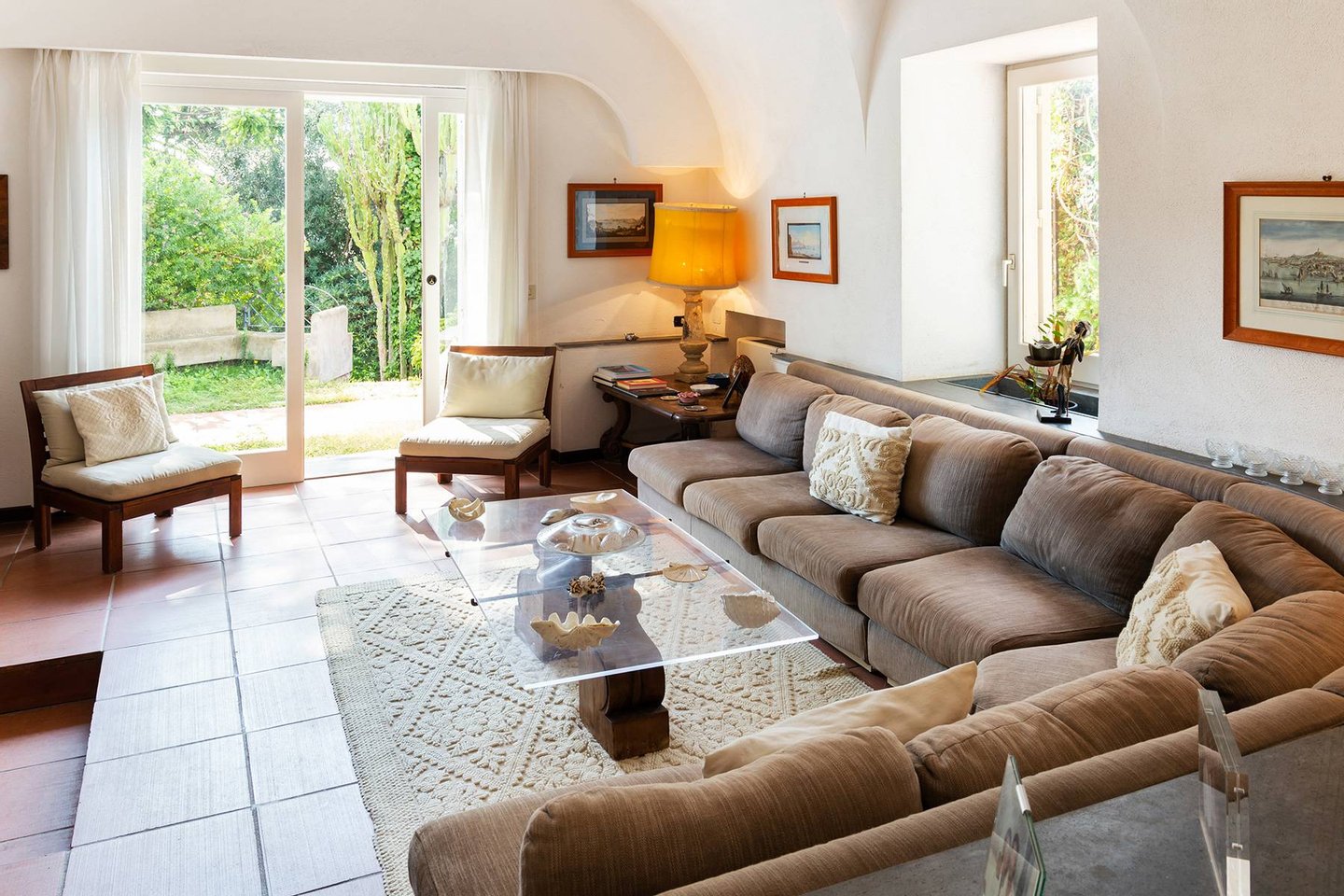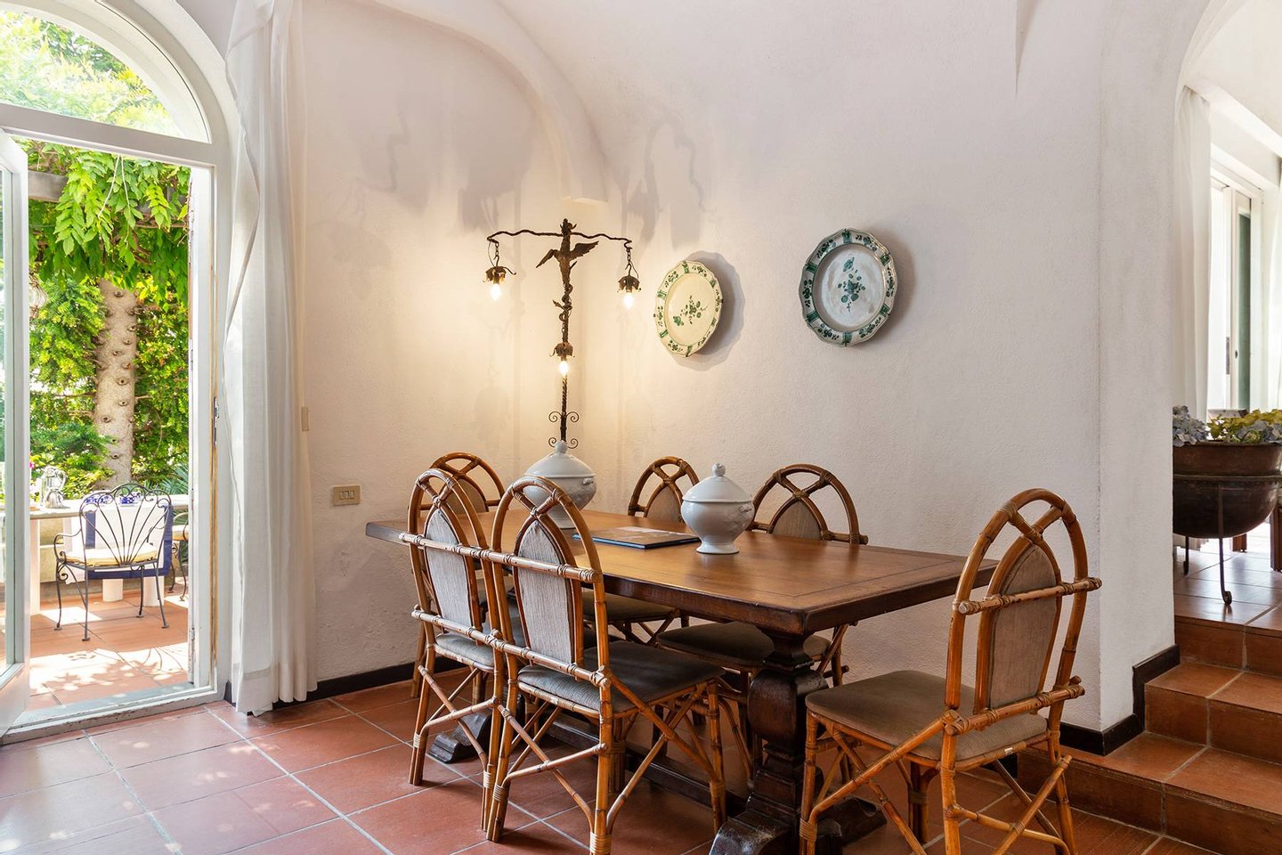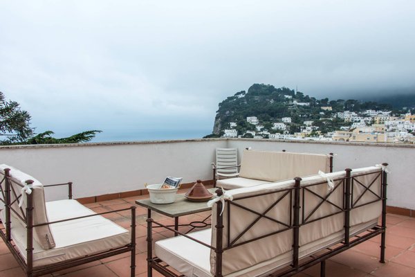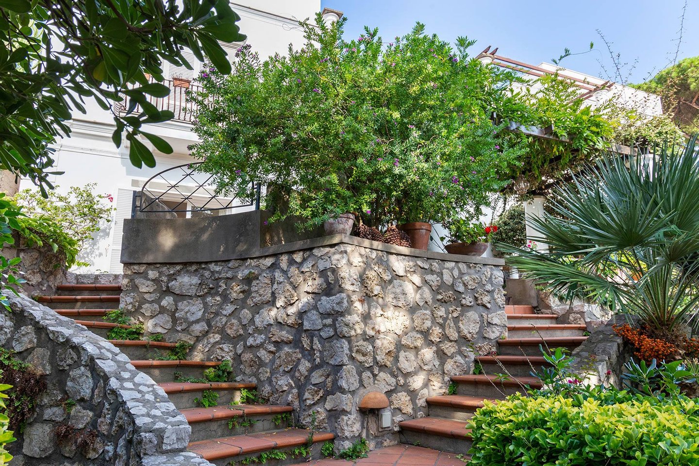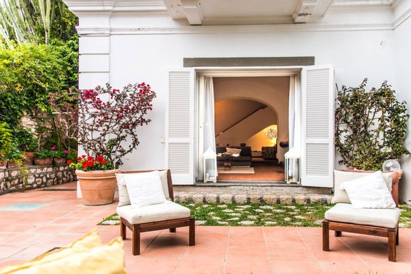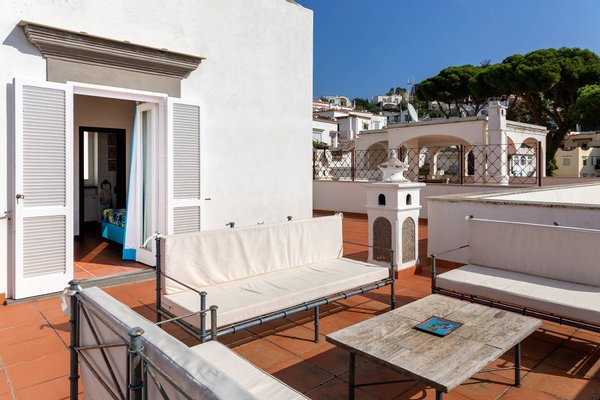 ...mehr lesenVilla dei Faraglioni is located in the heart of Capri near the famous ‘Piazzetta' and a stone's throw from Tragara where there is the ‘Faraglioni' lookout. In the town's centre but at the same time in oasis of tranquility. In front of the house there is a garden with Mediterranean plants typical of the area and panoramic terraces where you can enjoy the view upon ‘Marina Piccola'. Furnished with Italian and Mediterranean taste, the ceilings have the typical setting with cross and barrel vaults.