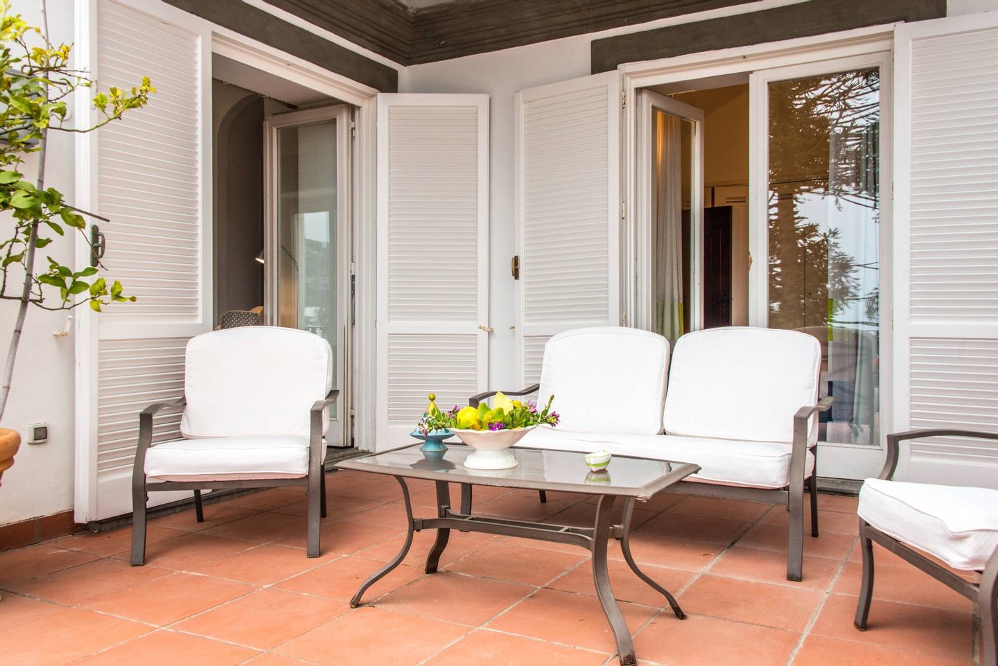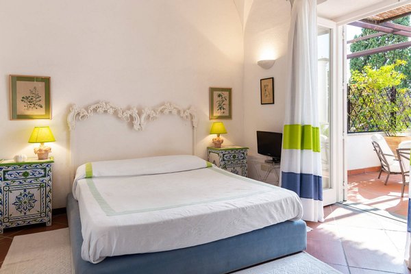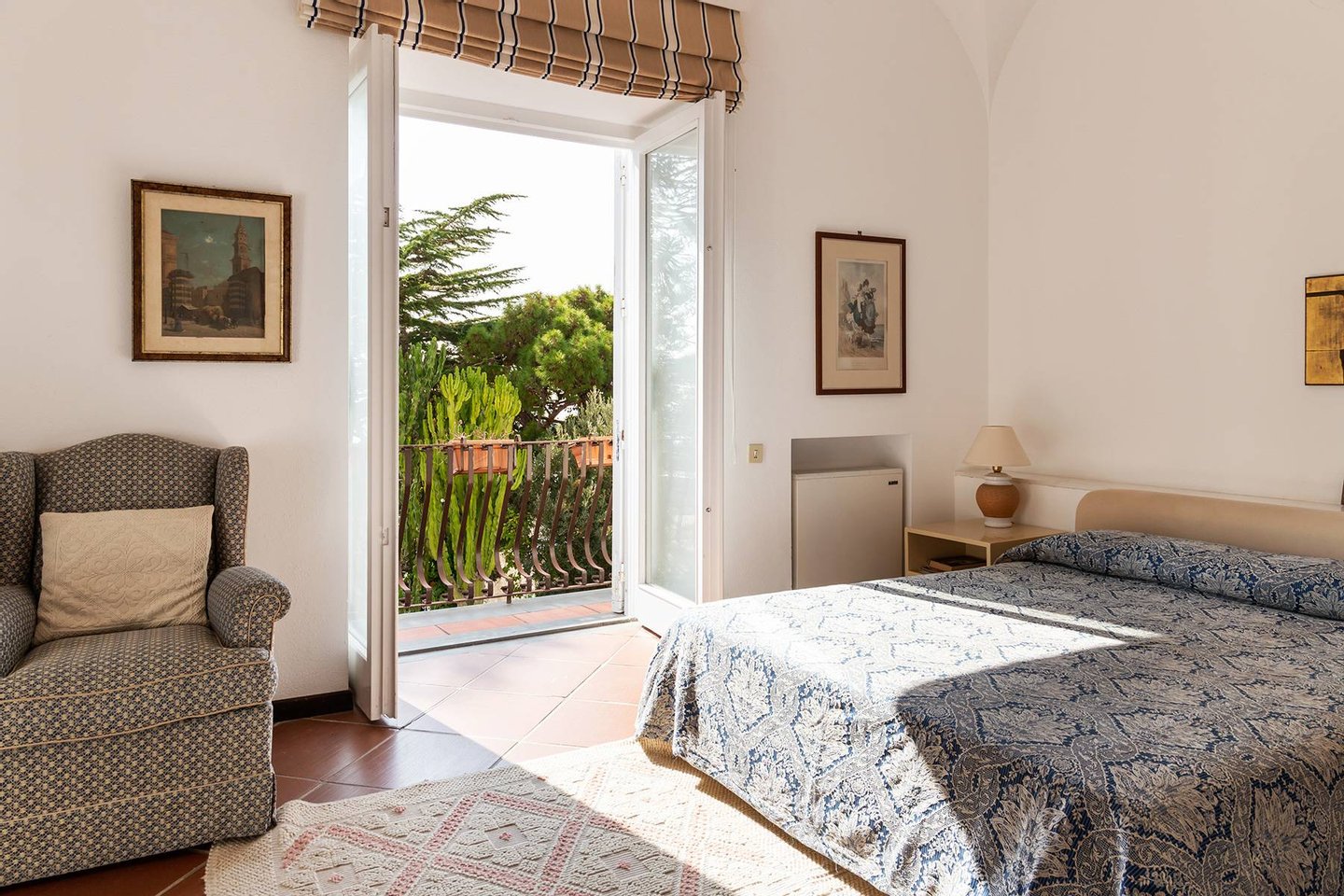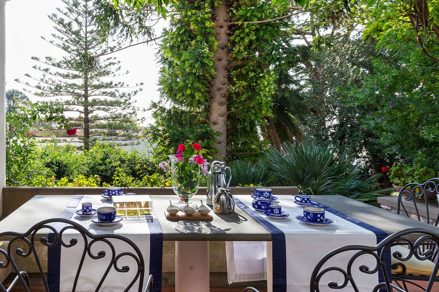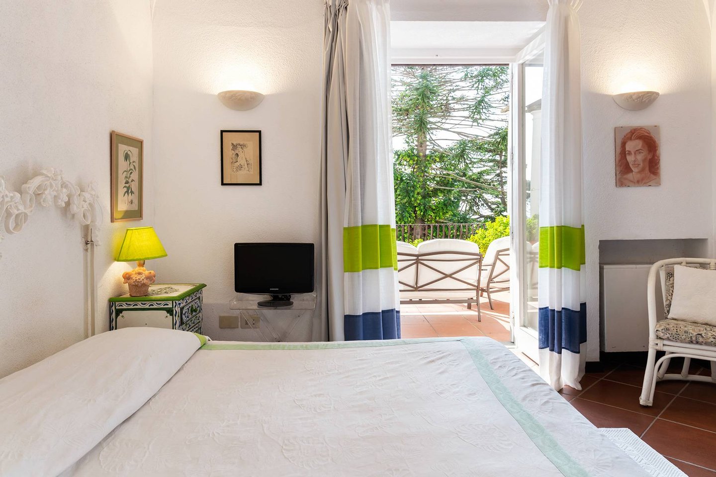 ...mehr lesenVilla dei Faraglioni is located in the heart of Capri near the famous ‘Piazzetta' and a stone's throw from Tragara where there is the ‘Faraglioni' lookout. In the town's centre but at the same time in oasis of tranquility. In front of the house there is a garden with Mediterranean plants typical of the area and panoramic terraces where you can enjoy the view upon ‘Marina Piccola'. Furnished with Italian and Mediterranean taste, the ceilings have the typical setting with cross and barrel vaults.