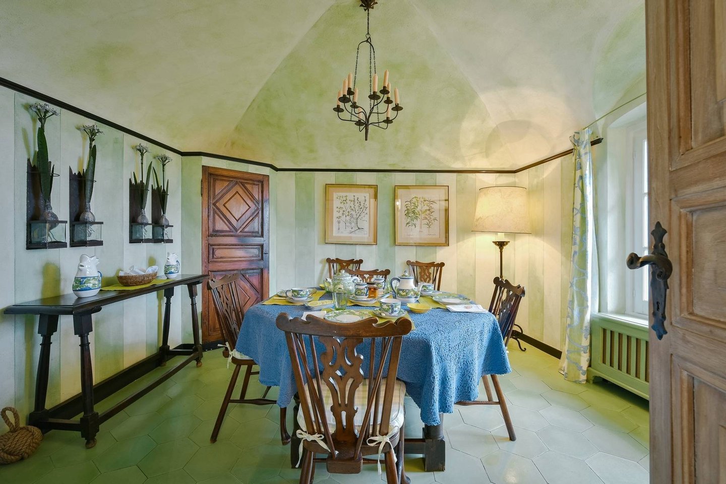The villa is furnished with an attractive blend of antiques and modern pieces. The elegant sitting room with fireplace and high ceilings with traditional wood beams, together with another extensive living room that opens onto the stunning terrace, offer a world of luxury and relaxation. The formal dining room with large windows provides breath-taking views of the harbour, and the vaulted ceiling delivers a stylish atmosphere.