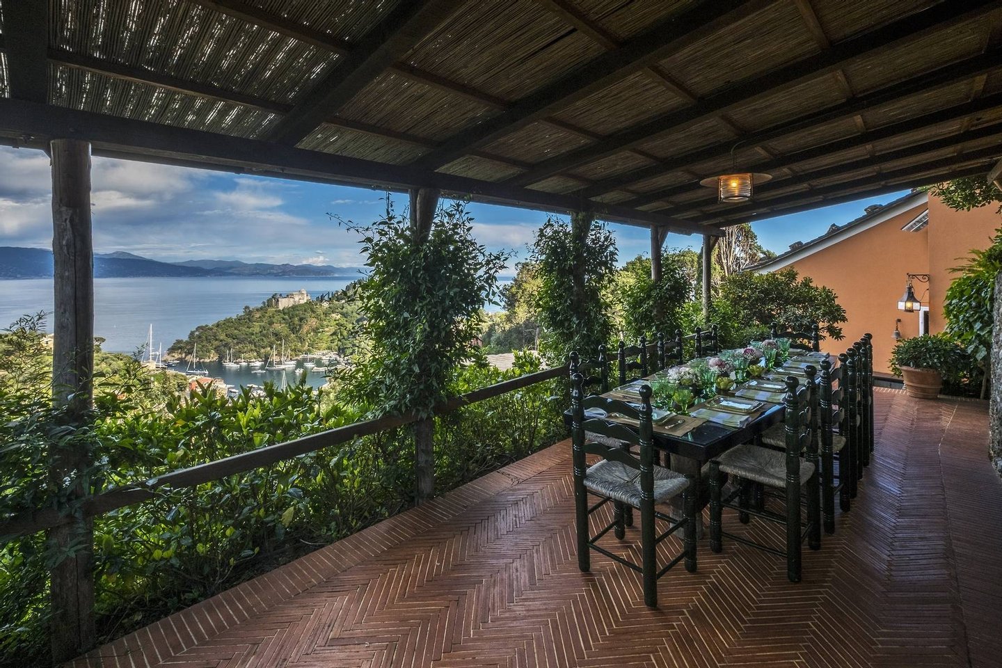 The property is an exquisite 12-acre luxury estate set on the hills overlooking the attractive bay of Portofino. The property offers vast views of the sea, embracing the typical coastal life.