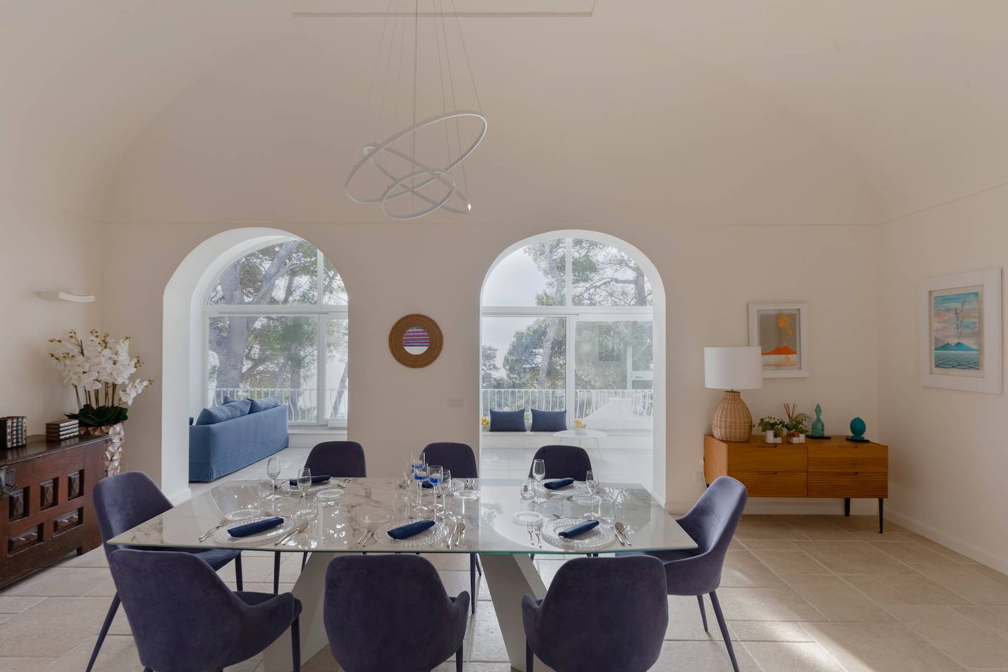 Villa Sophie is undoubtedly one of the most luxurious villas on the island of Capri. The villa's position and architecture are complemented by full service and staffing.The space has been built directly into the exposed volcanic rock, creating a