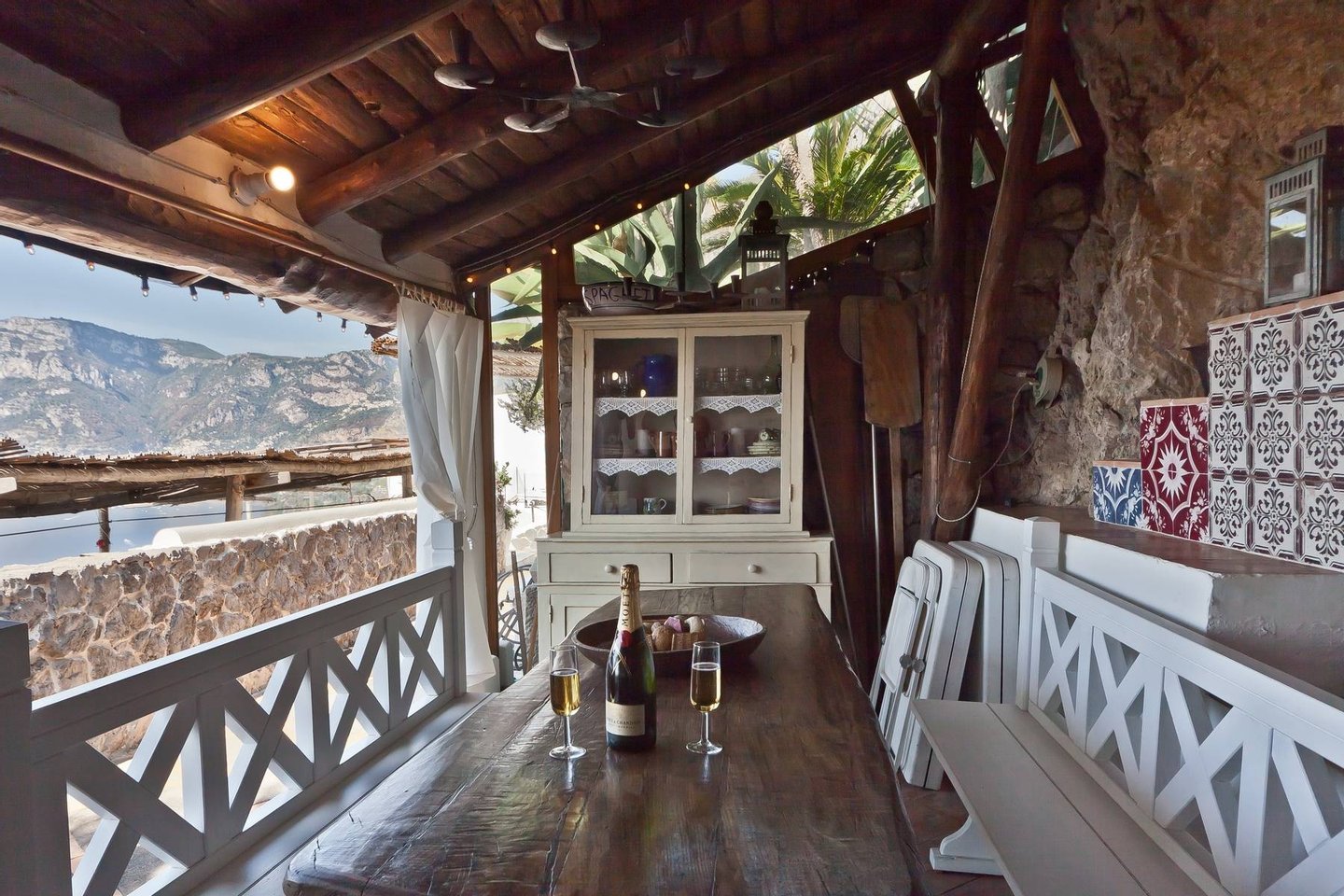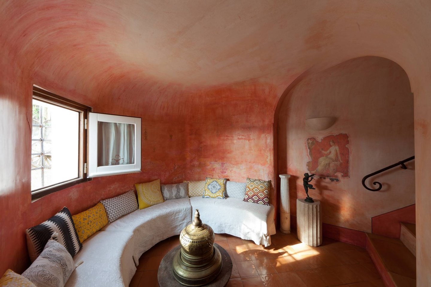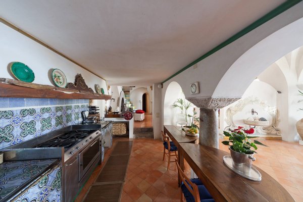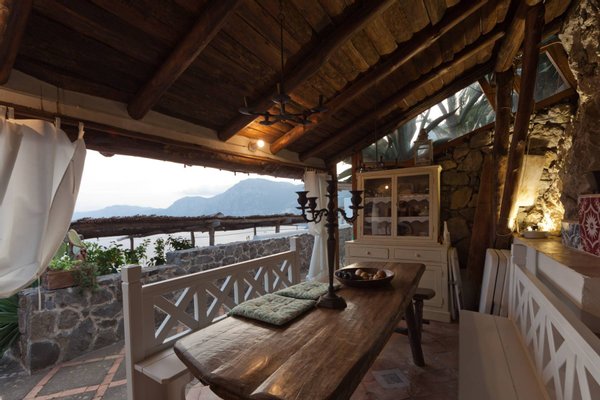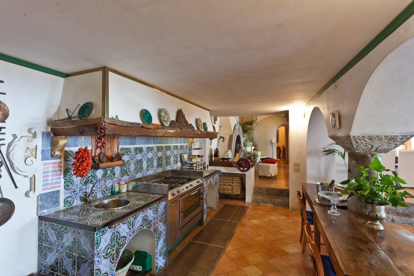 The entrance to the beautiful property, which is about 500 square meters and surrounded by terraces and gardens, makes one immediately perceive the vibrant sensation of being completely immersed in life near the sea. On the living stone terraces there is a typical wood-burning oven where guests can spend an evening learning how to prepare the true Neapolitan pizza. In the well-kept interior and vaulted rooms, an old kitchen with Neapolitan tiles from the 18th century guests can enjoy the most traditional Mediterranean cooking school of the ancient fishermen's village.