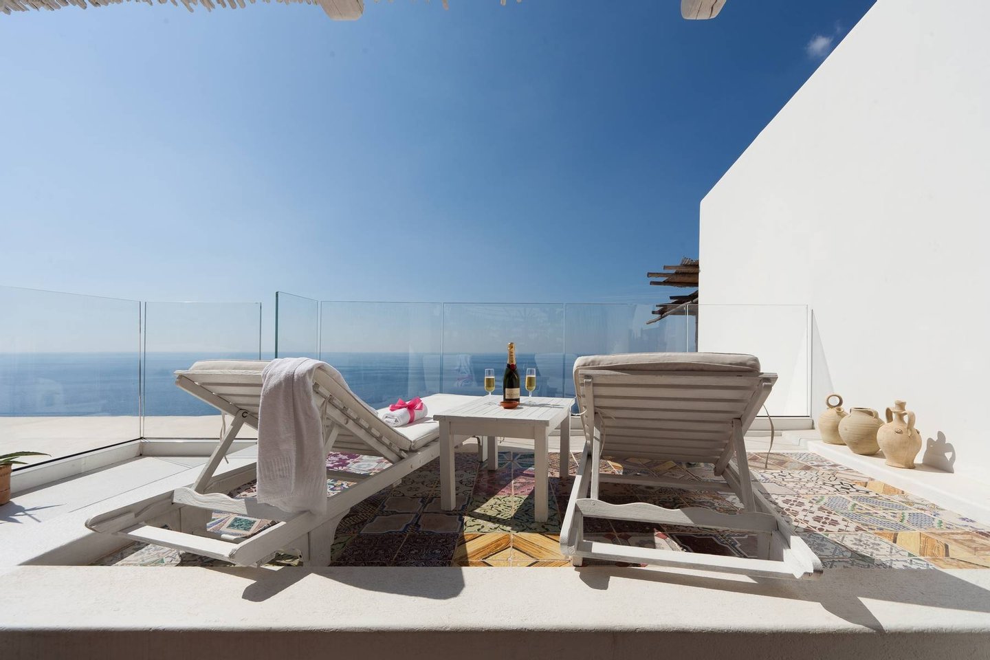 Villa Oleandro is a luxurious home situated between lemon and olive trees, immersed in typical Mediterranean scrub, with spectacular views over the sky and the sea, overlooking the lovely village of Praiano, Capri Island, Faraglioni, the Peninsula