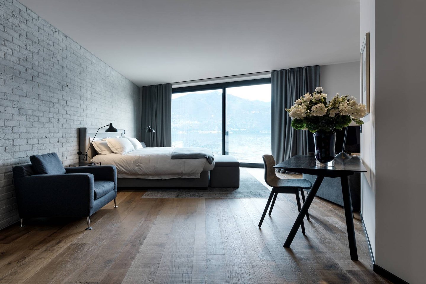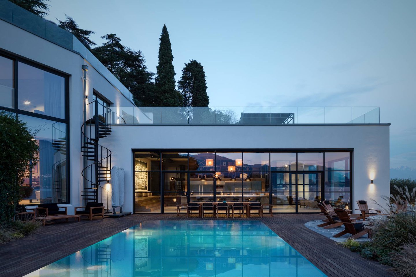 Sitting rooms and living areas abound, there is a stunning SPA area, fitness area, private cinema and a well-equipped kitchen. The 8 suites are equally spacious and characterized by wonderful beds, top linens, luxury bathroom amenities, with en-suite state of the art bathrooms and all modern amenities. Most of the 8 suites have access onto large terraces with lake view. A true ultra-modern property that gives full privacy during your stay.