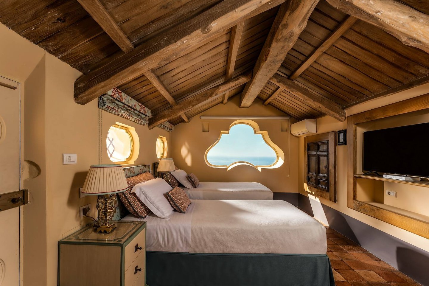 This gorgeous Amalfi "palazzo" can accommodate up to nine guests. The accommodations include two suites, two double bedrooms, and a single bedroom, all with private bathrooms and all furnished with antiques dating primarily from the Baroque period.