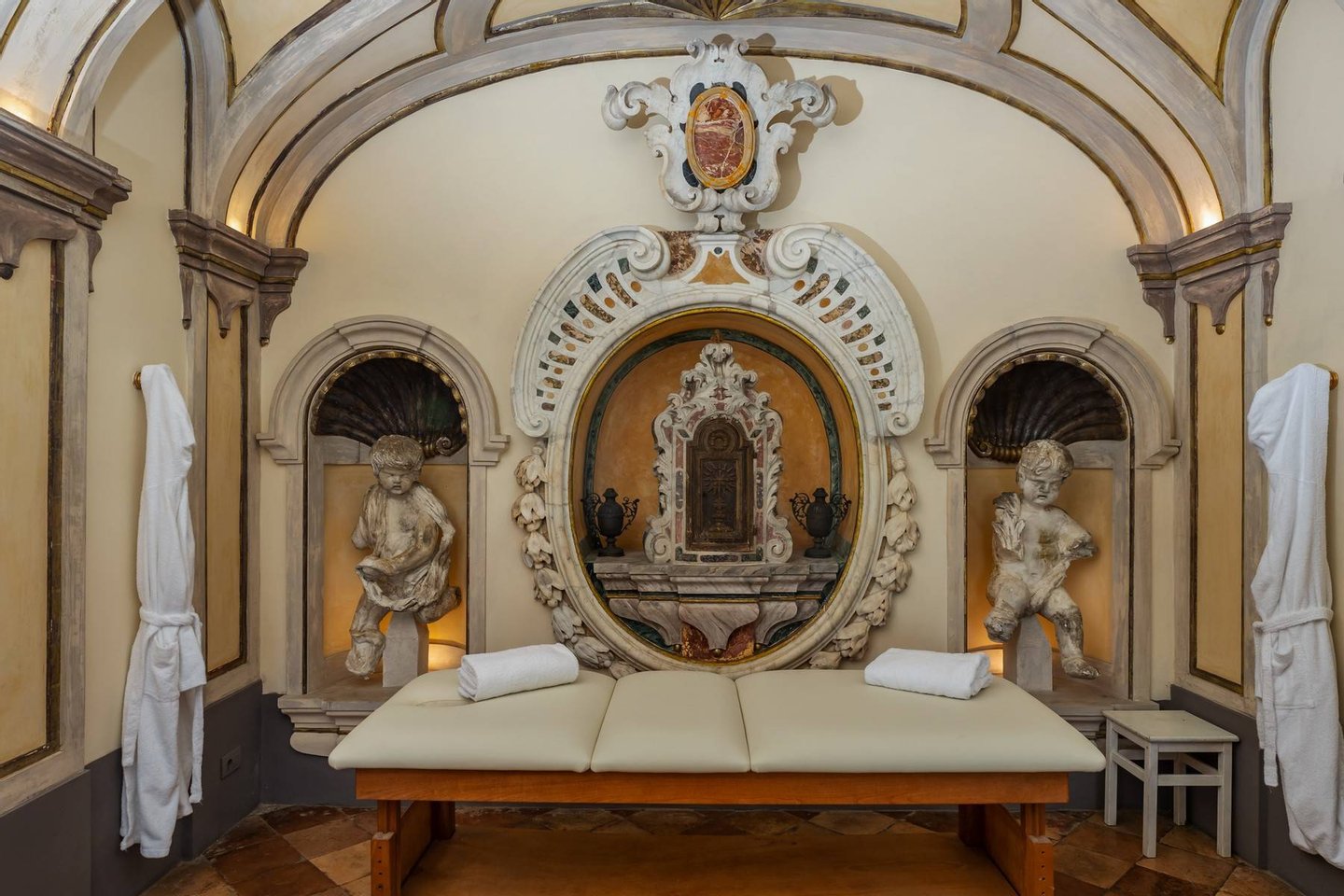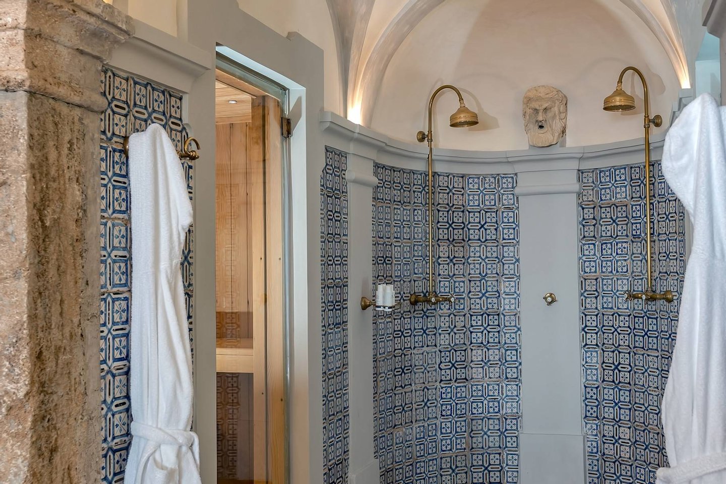 The backdrop of the estate a, a historic bishop's residence dating from the 1700s, is breath-taking. This magnificent "palazzo" dominates the bay of Positano, offering an unforgettable gratification of all five senses. The estate indulges its guests with its many luxuries, for instance the private spa with the indoor pool, the sauna, the calidarium/ frigidarium, the Hammam and the outside jacuzzi. The gorgeous terraces overlooking the marvellous bay and the Mediterranean Sea are perfect places to relax and enjoy sunbathing or dining al fresco.
