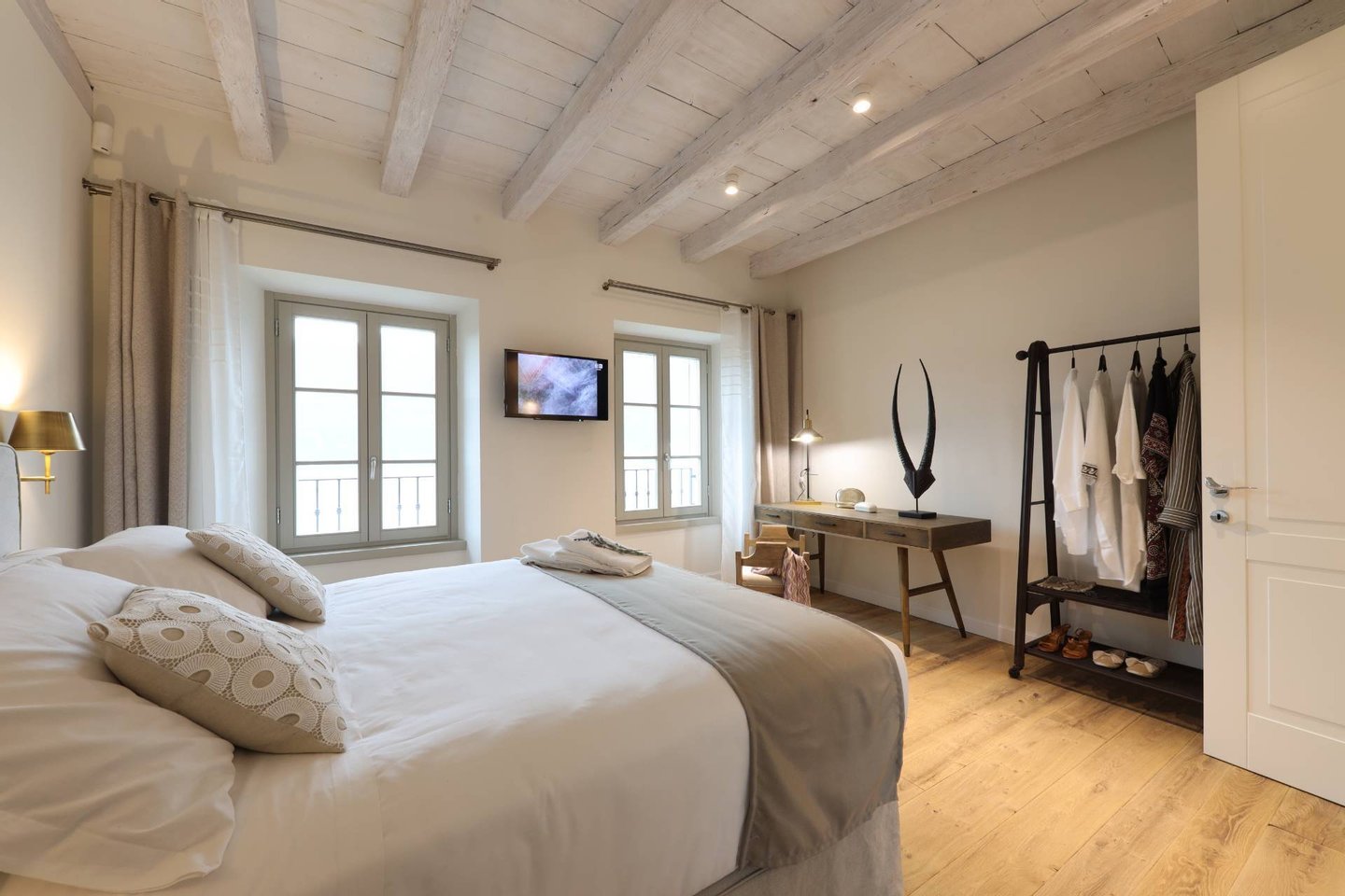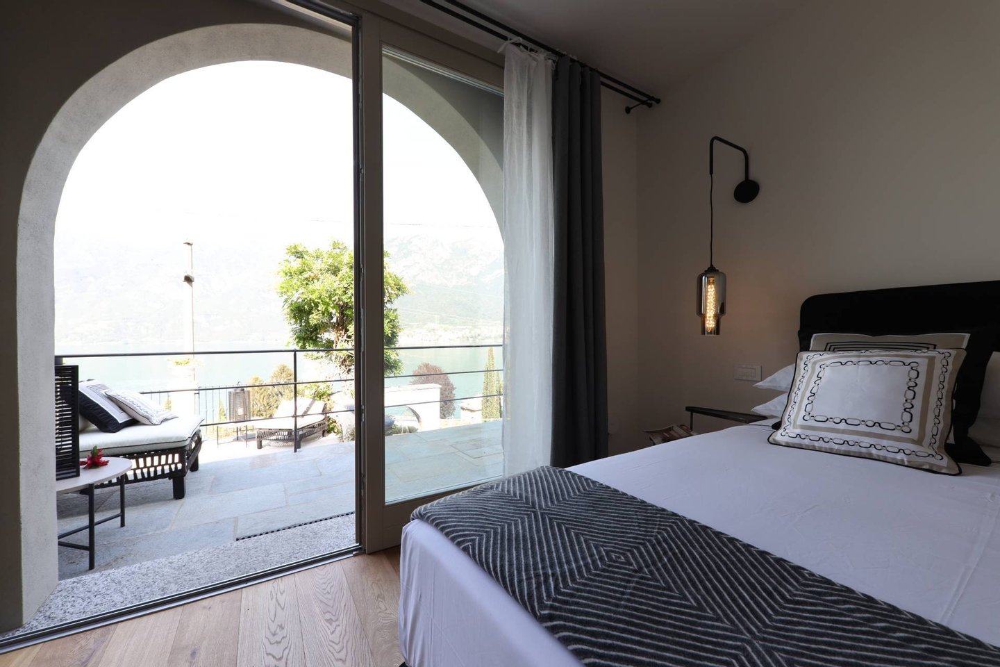 ...mehr lesenVilla Lago consists of a living area with a large dining room and open kitchen and seven rustic style bedrooms spread across the villa and all characterized by the beautiful view of the lake which the guests can enjoy from every room. All rooms have been designed and built to provide maximum comfort in all aspects, with design elements, high quality fabrics, and attention to details. Each room, like the entire hotel, is equipped with Wi-fi and a small corner desk and minibar. All guest scan also enjoy a heated whirlpool swimming pool, a terrace with a panoramic view of the lake and the green spaces where you can relax and regenerate yourself.