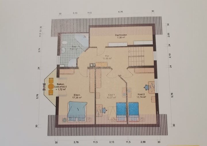 Für einen nochmaligen Wohnraumzugewinn besteht die Möglichkeit das etwa Dachgeschoss weiter auszubauen.