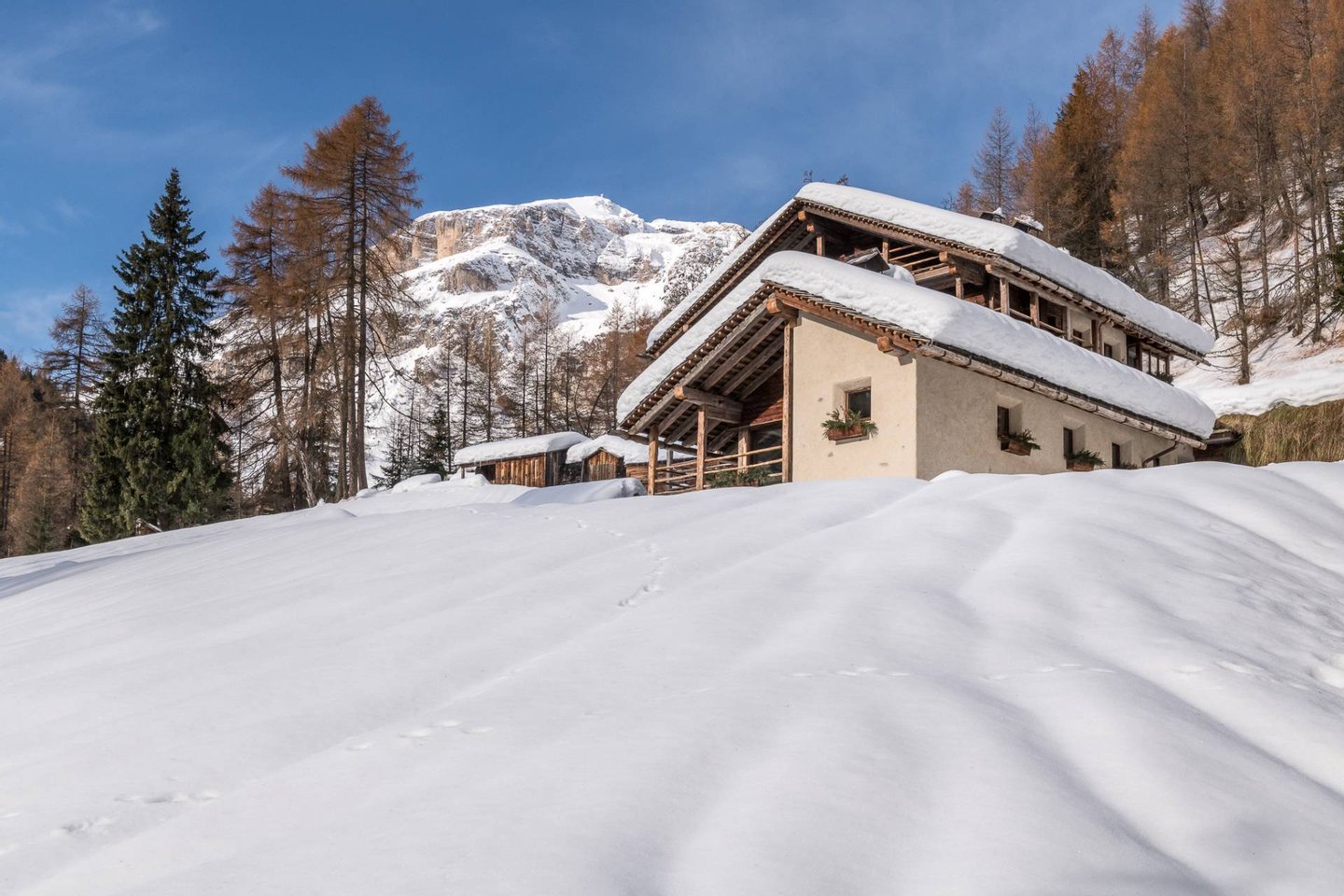 Chalet Arabba is made up of two internally connected buildings, each carefully renovated with recycled materials to maintain the original appearance of the original historic farm and equipped with modern technological systems granting high comfort levels.