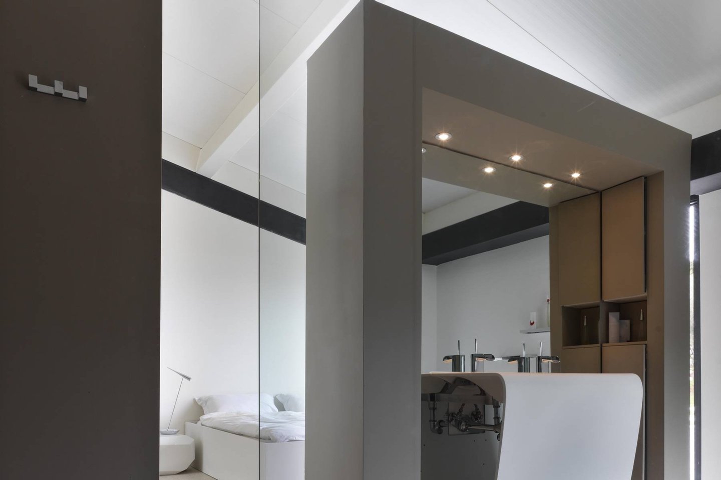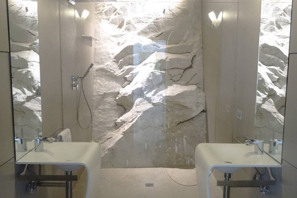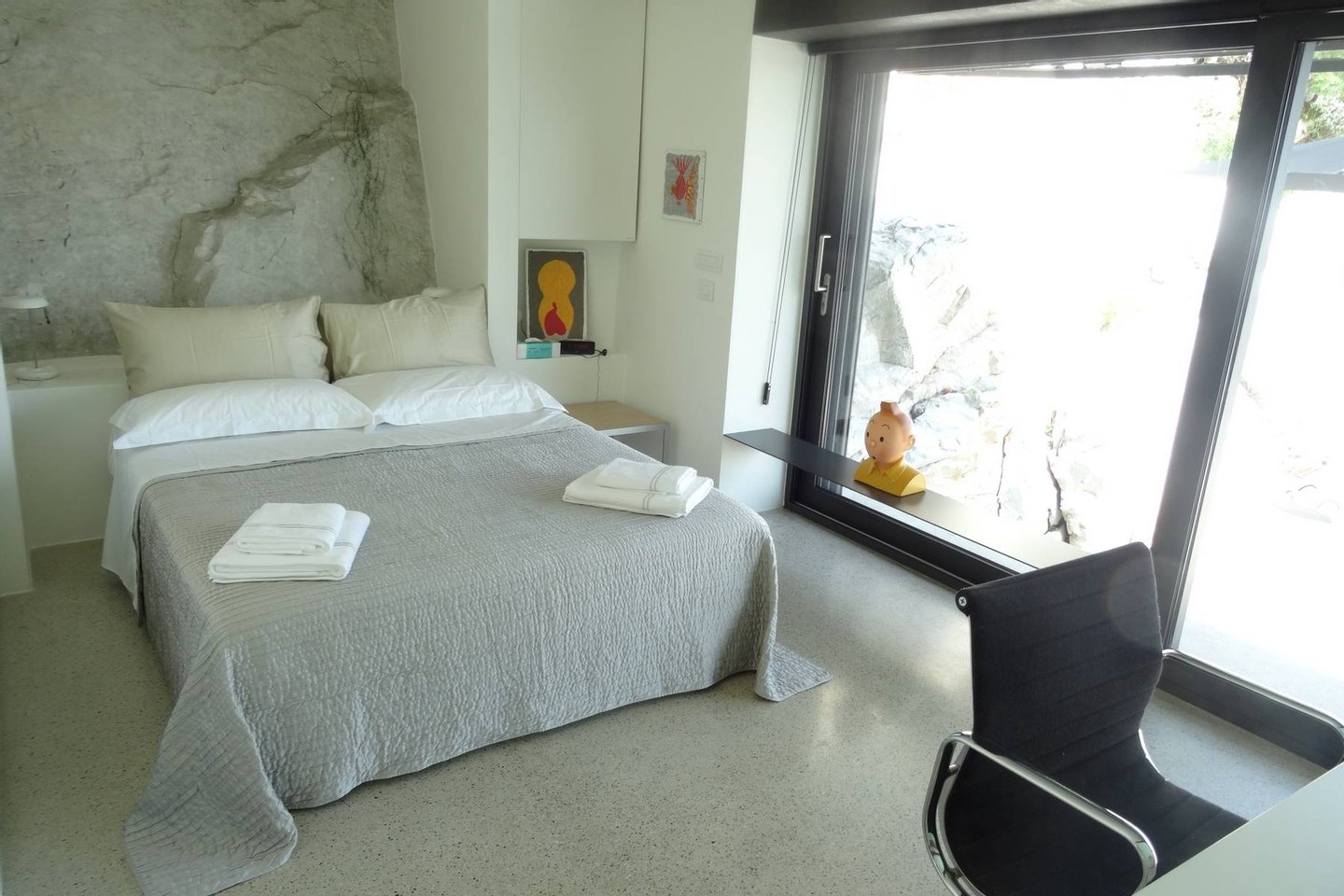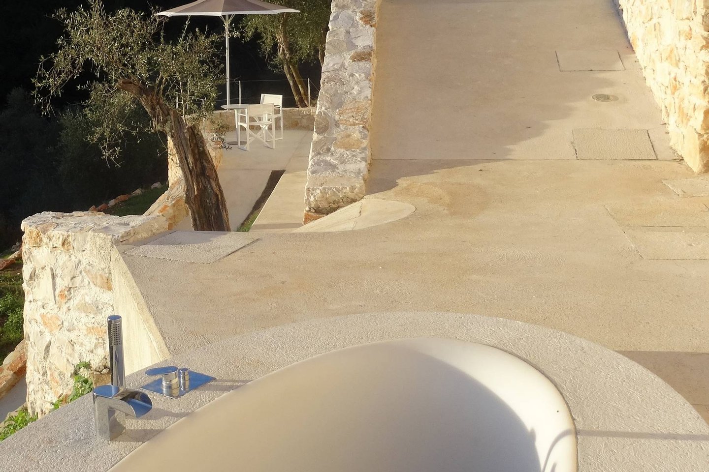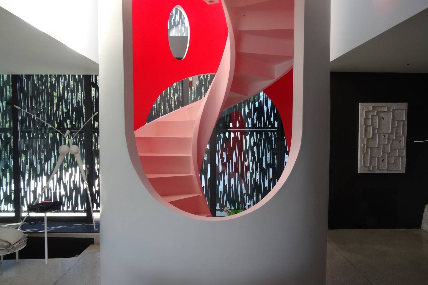 This estate is the result of design and environmental consciousness, having been constructed using ecological techniques and local materials. Though juxtaposing, it blends gorgeously with its surroundings. The design of the shutters of the house were the inspiration for an elaborate bowl, found in the house as a centre piece for the table in the lounge area, designed for the Alessi 2016 Collection. The furniture inside the house, like the sofas, the central table on the ground floor, and the marble seats located on the outdoor terrace, are all unique pieces of designer art.