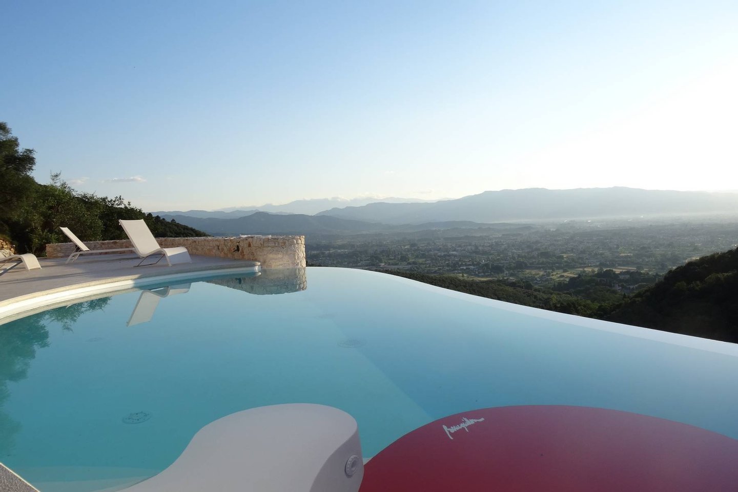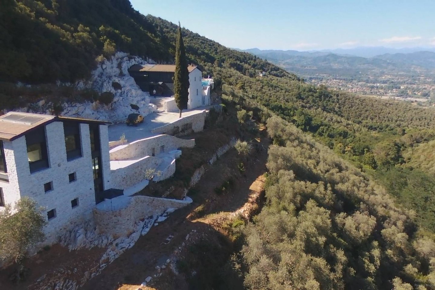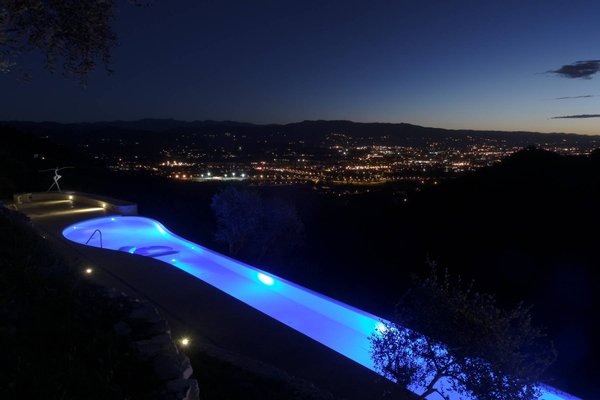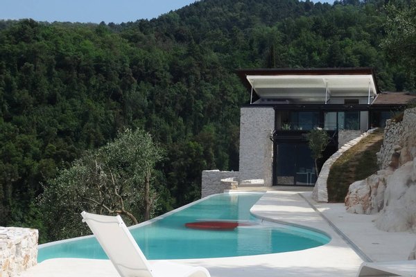 The panoramic views from the villa are extraordinary. Perched on the hills, guests can see the entire city of Lucca and its surrounding walls. The villa sits upon 10 hectares of olive groves and woods. The villa, the guest-house, and the swimming pool are true jewels of contemporary architecture and technology, all immersed in the Tuscan nature with distant views of the surrounding medieval villages. Both the main villa and the guesthouse sit amongst and are part of a hill of white marble. This famous white marble is the same as that found at the famous city of Carrara, located a short distance from the villa. Meanwhile the city of Lucca is only ten minutes from the property while the city of Pisa is 15 minutes away.