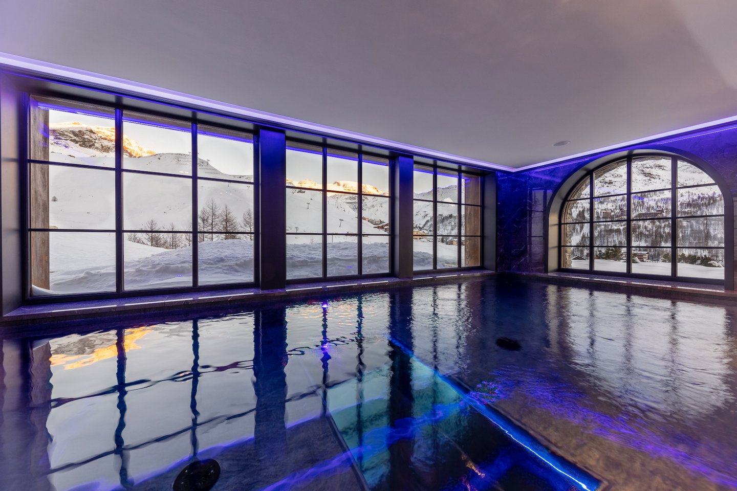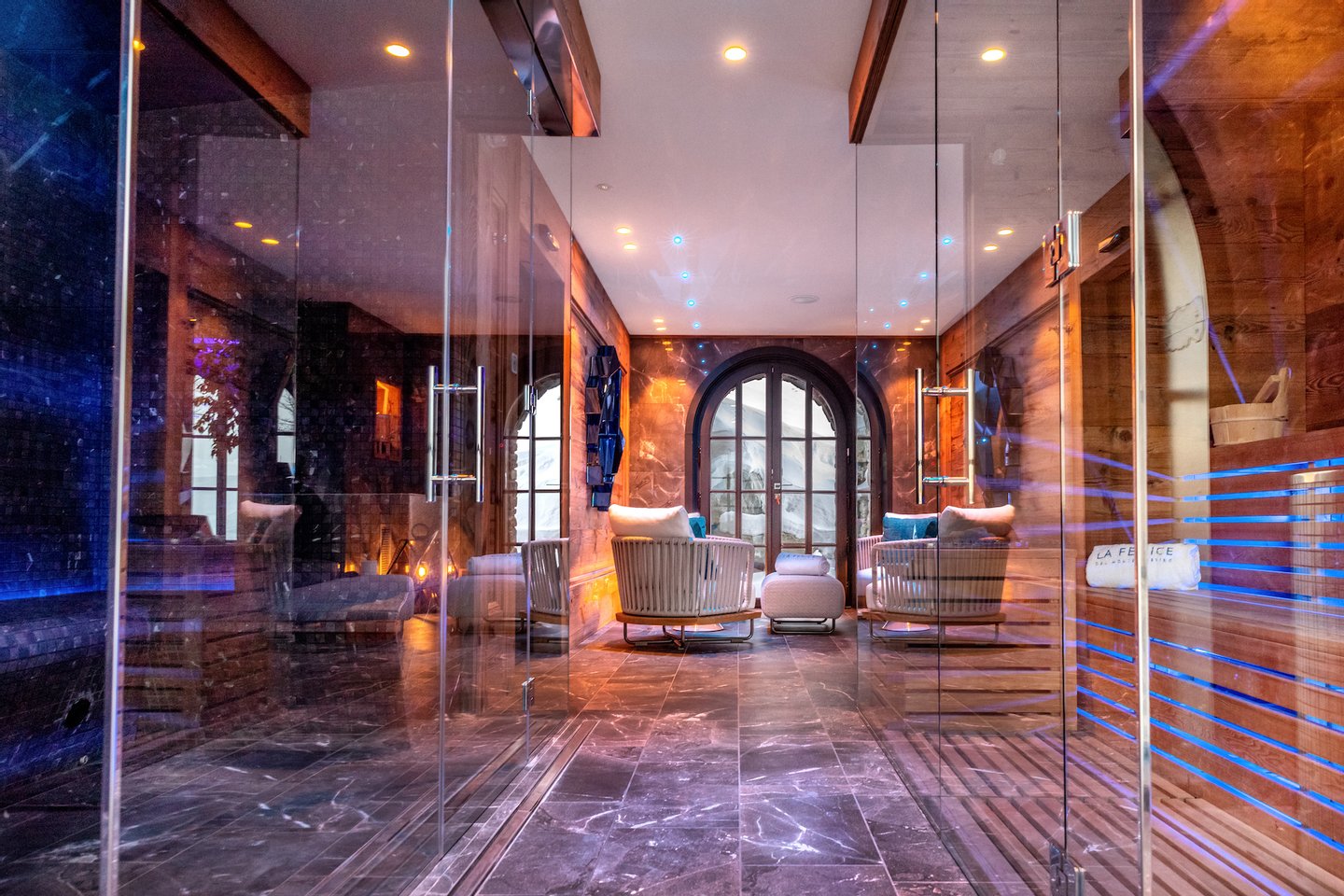 The seven stunning ensuite double bedrooms designed with Minotti furniture have beautiful views over the valley and of the breathtaking slopes of the Matterhorn. Most rooms have their own private terraces and high-end marble-clad bathrooms. The Swarovski chandeliers make the interior of the sumptuous living areas even more astonishing. Due to the extraordinary design and magnificent views of the Italian Alps Chalet Cervinia is an exceptional holiday destination.