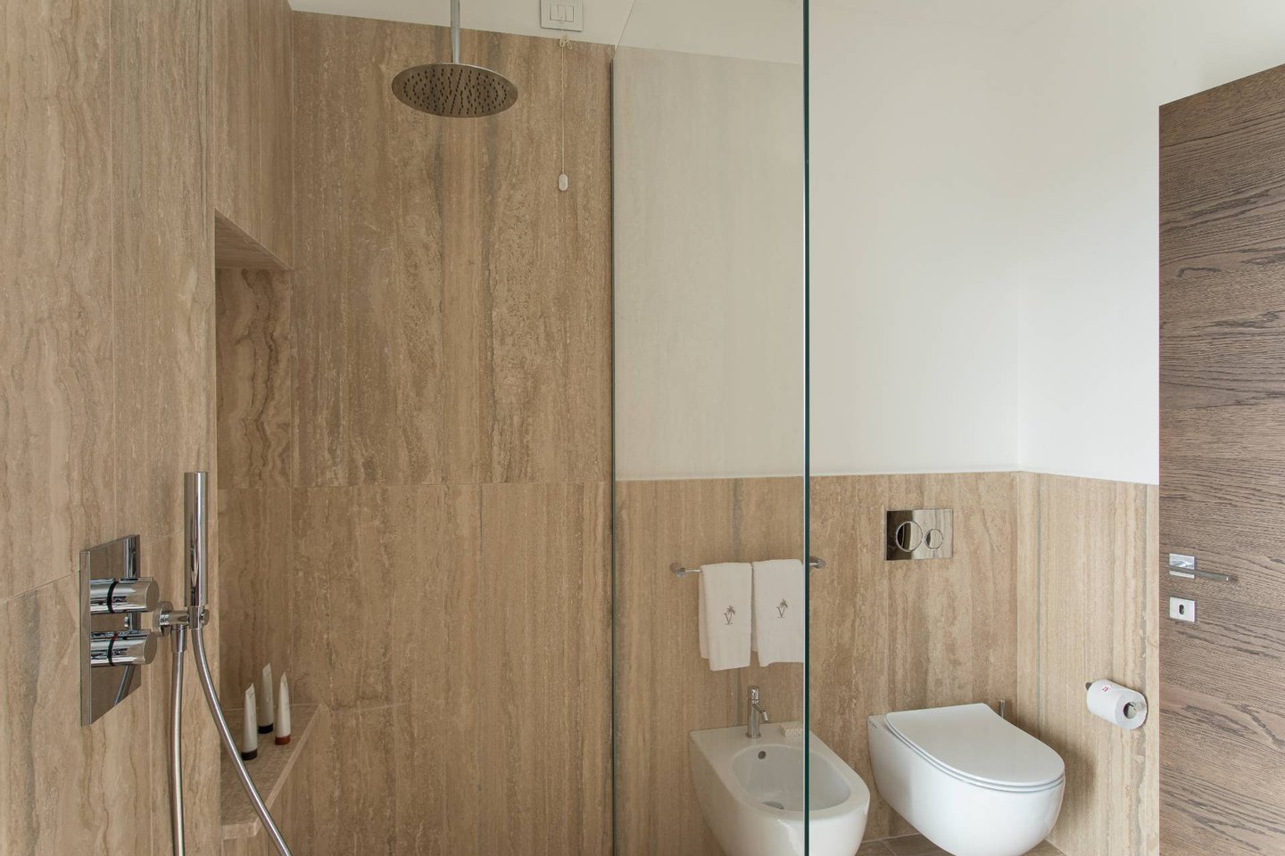 Three of the four bedrooms are located on the upper floor, each with a private bathroom, king-size beds, and beautiful coastal views. All rooms have their own private outdoor terrace, offering the perfect spot to sip a morning espresso or an evening aperitif. The fourth bedroom boasts all the features of a stylish master bedroom and is detached from the rest of the villa, creating a secluded retreat with a separate entrance.
