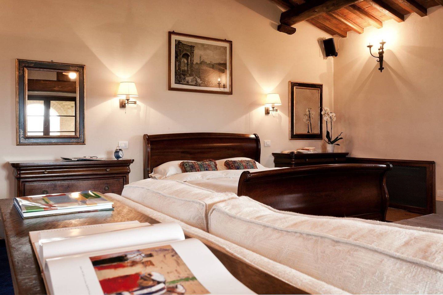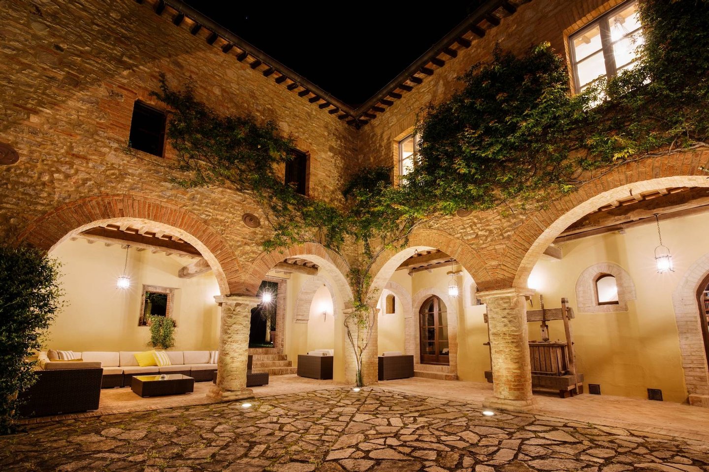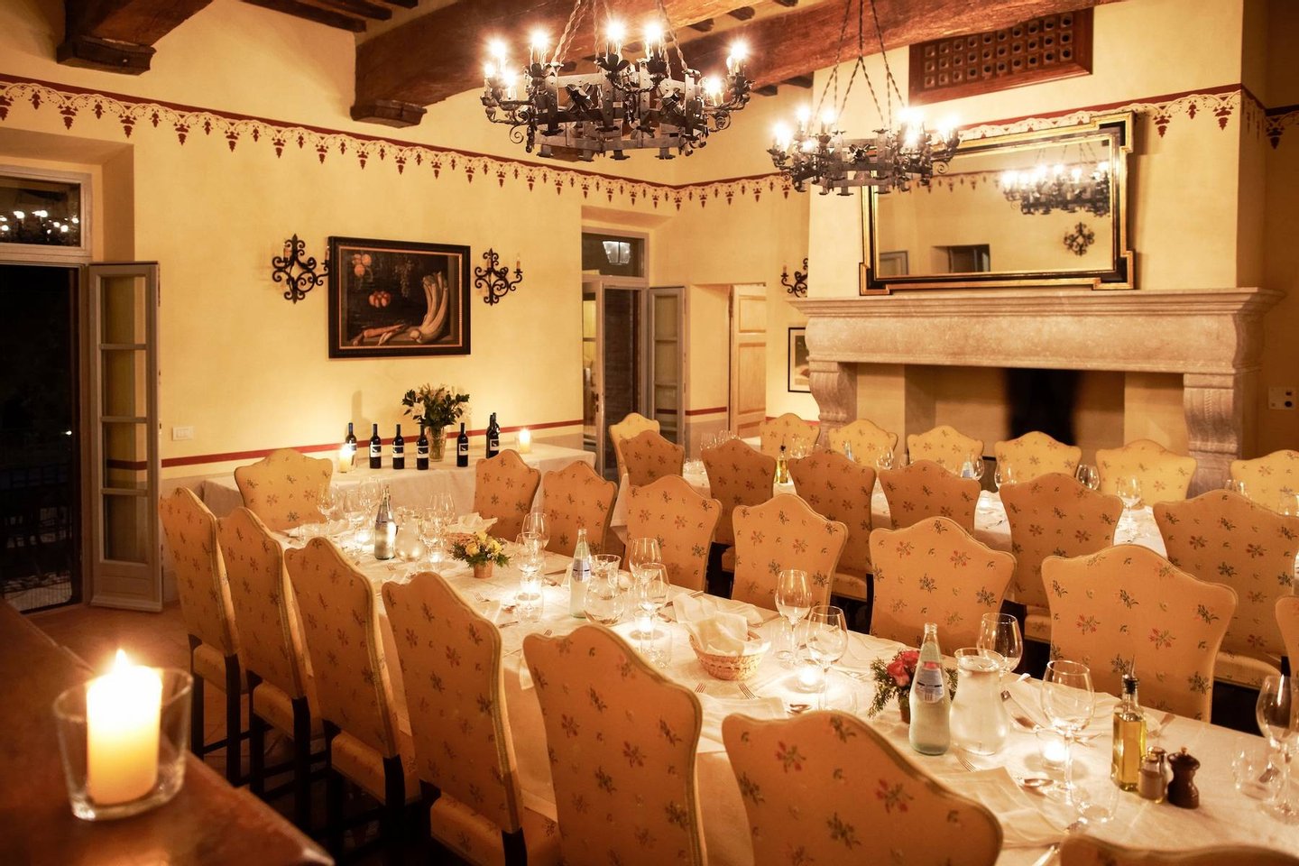 The recently restored property offers 22 bedrooms with the best comforts that a hotel and a manor-house could offer. The structures tower over the central piazza, the village's original town square. It offers several facilities such as the indoor and outdoor dining areas, conference facilities, a ballroom, a media-room, a wine tasting room, the garden with its pool, a library, a gym, a piano and video games.