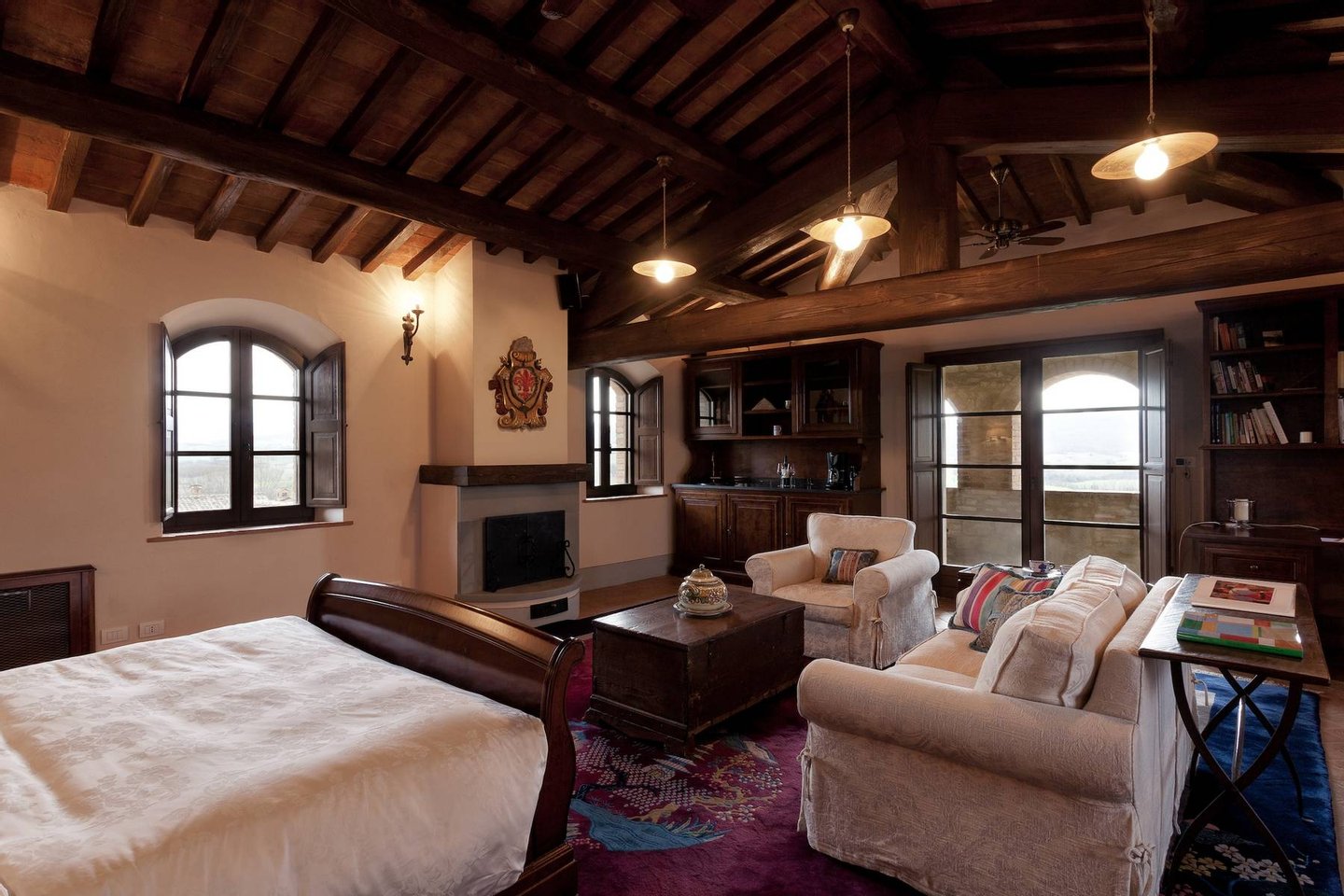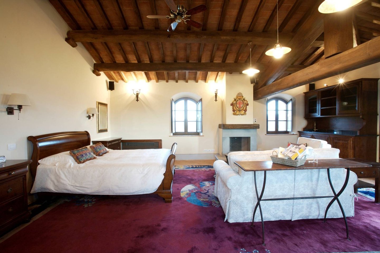 The estate offers its guests the most luxurious comforts for an exceptional and memorable holiday. The villa completely restored has preserved its authentic features and richness thanks to the original beamed ceilings, cotto floors and stone walls that, combined with the cosy decorations offer an elegant country property nestled in the beautiful Tuscan hills.