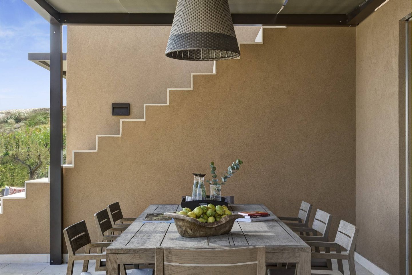 Three of the four bedrooms are located on the upper floor, each with a private bathroom, king-size beds, and magnificent views of the coastline. All rooms have their own private outdoor terrace, providing the perfect setting for al fresco dining. The fourth bedroom offers all the features of a stylish master bedroom and is detached from the rest of the villa, creating a secluded retreat with a separate entrance.
