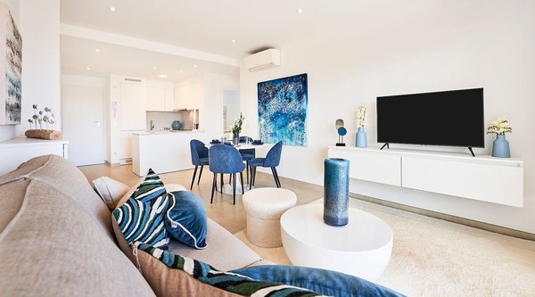 Die Erdgeschossapartments verfügen über große Terrassen mit Veranda und eigenem Gartenabschnitt, alle anderen Wohnungen bieten ebenfalls großzügige Terrassen mit herrlichem Blick auf die ländliche Umgebung, die schön angelegten Gemeinschaftsgärten, die Pools oder auch auf den Fischerhafen. Die modernen Apartments sind hochwertig, mit viel Liebe zum Detail ausgestattet und erfüllen den hohen Qualitätsstandard, der von einem Unternehmen mit über 60 Jahren Erfahrung im Bau von erstklassigen Immobilien in Spanien zu erwarten ist. Zu jedem Apartment gehört ein Pkw-Stellplatz.