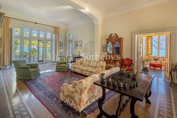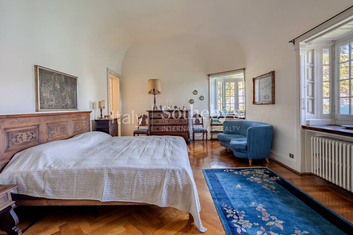 Das riesige Esszimmer und das Wohnzimmer nehmen den Rest des Erdgeschosses ein, um Platz für die 11 Schlafzimmer mit Seeblick zu schaffen. Wenn Sie die Hauptvilla verlassen und den Park durchqueren, erreichen Sie das herrliche Schwimmbad am Seeufer, umgeben von hundertjährigen Bäumen, wo sich das Nebengebäude befindet. Der riesige Park mit Blick auf den See beherbergt zwei weitere Wohngebäude: Casa a Lago mit einer Fläche von fast 200 qm, Casa Alta, die auf der Spitze des Hügels steht, das Rustico und ein Gewächshaus. Wir setzen den Spaziergang im Park fort und erreichen schließlich das Dock.