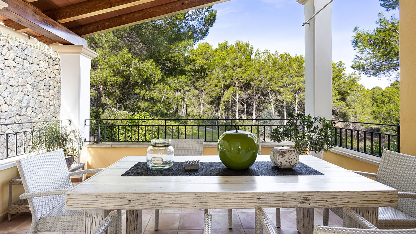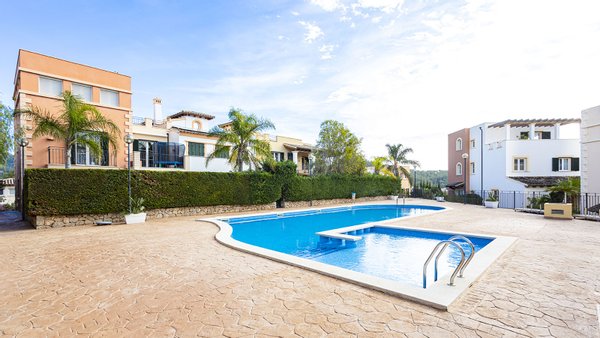 Die Mallorca Immobilie mit viel Privatsphäre liegt in einer schicken Residenz und bietet eine bebaute Wohnfläche von ca. 208 m2 und ist wie folgt ausgestattet: Ein helles Wohn-/Esszimmer mit Zugang zum Terrassenbereich mit Blick auf den Golfplatz. Der ideale Ort, um die sommerlichen Abende auf Mallorca zu genießen. Die große und helle offene Einbauküche ist komplett ausgestattet und schließt sich dem Wohnbereich an. Es stehen insgesamt 3 Schlafzimmer, 2 Badezimmer (davon eines en Suite) und 1 Gäste-WC zur Verfügung. Im Außenbereich können Sie unter freiem Himmel zu Abend essen, die vielen Sonnenstunden genießen oder sich am Gemeinschaftspool erfrischen. Genießen Sie den Blick in die Landschaft und den authentischen, mediterranen Charme dieser Immobilie. Des Weiteren gibt es: doppelt verglaste Fenster, elektrische Fußbodenheizung, Klimaanlage, 1 großer Hauswirtschaftsraum, Alarm- und Gegensprechanlage, Einbauschränke, Terrakottafliesenboden, 1 Carportplatz, sowie ein elektrisches Zufahrtstor.
