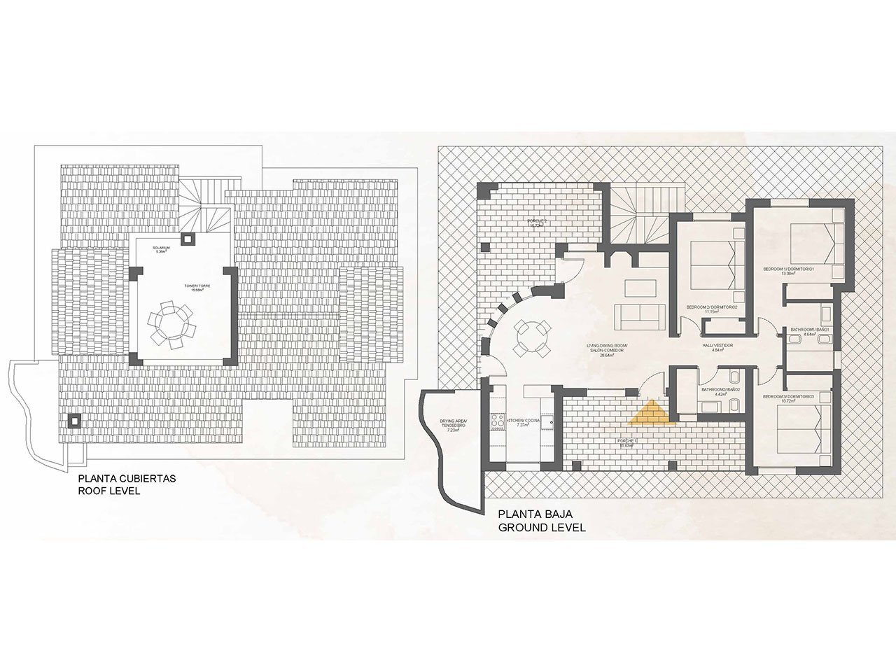 Diese wunderschönen Villen verfügen über eine konstruierte Fläche von ca. 180 m² (inklusive Terrassen) mit