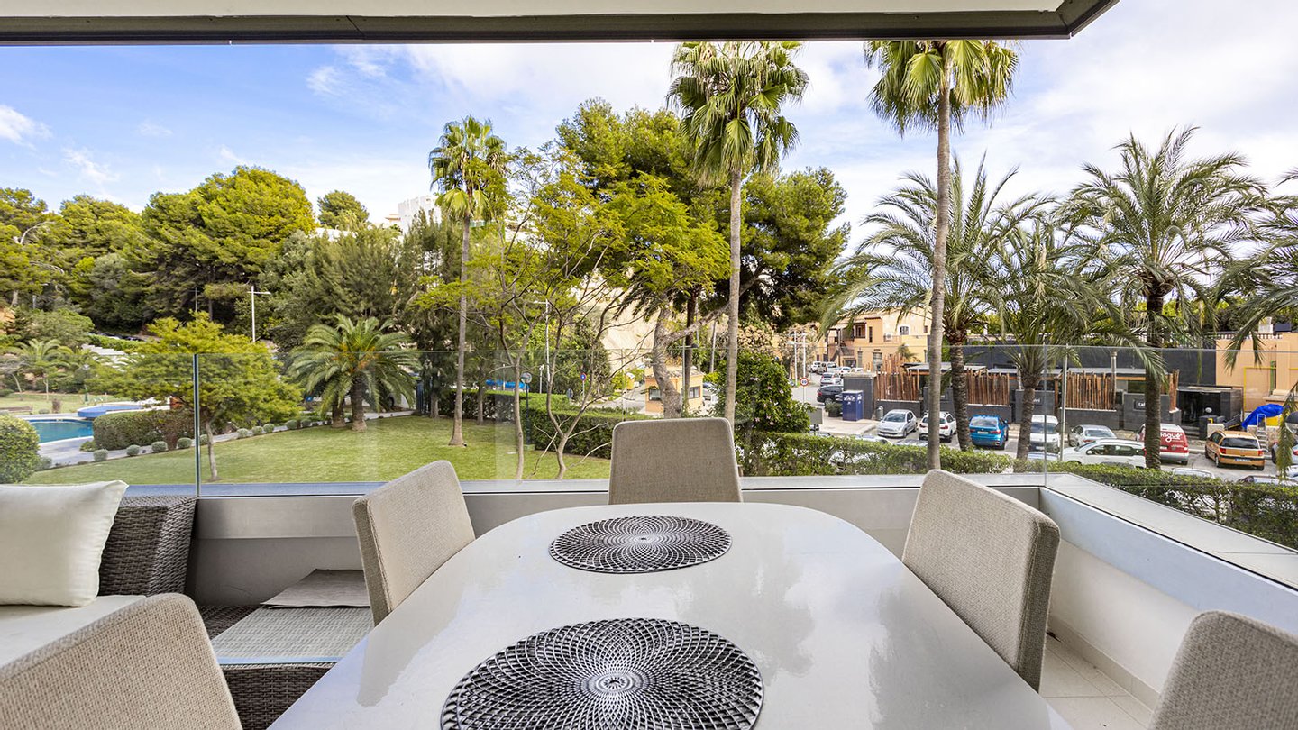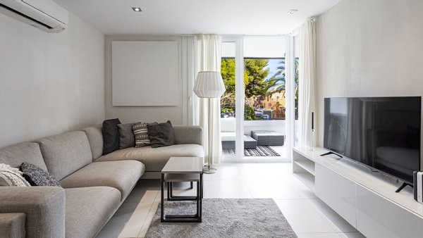 Top Immobilien Mallorca: In nur 2 Minuten zu Fuß erreichen Sie den malerischen Strand und den mondänen Yachthafen von Puerto Portals, im Südwesten von Mallorca. Das elegante Apartment wurde im Jahr 2019 mit renoviert und stilvoll dekoriert.