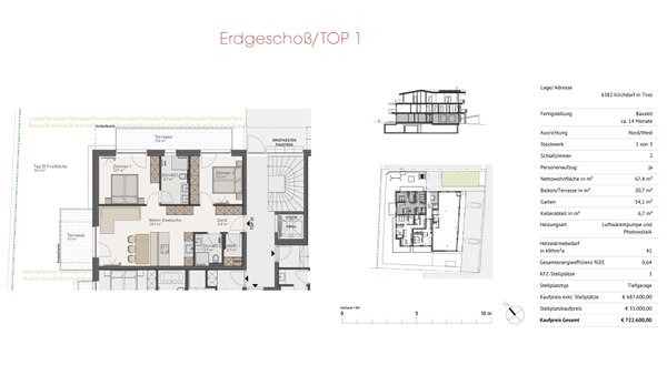 Über die großzügige, hauseigene Tiefgarage gelangen Wohnungseigentümer mittels Lift bequem in alle Etagen. Modernen Anforderungen entsprechend, bieten alle Wohneinheiten schwellenfrein Zugang und garantieren hohen Sicherheitsstandard. Die Bausubstanz des Gebäudes sowie die exklusive Grundausstattung der Wohnungen, entsteht in Zusammenarbeit mit heimischen Professionisten. Im Vordergrund der architektonischen Gestaltung steht die Verbindung aus Mensch und Natur, die sich im Materialeinsatz widerspiegelt.