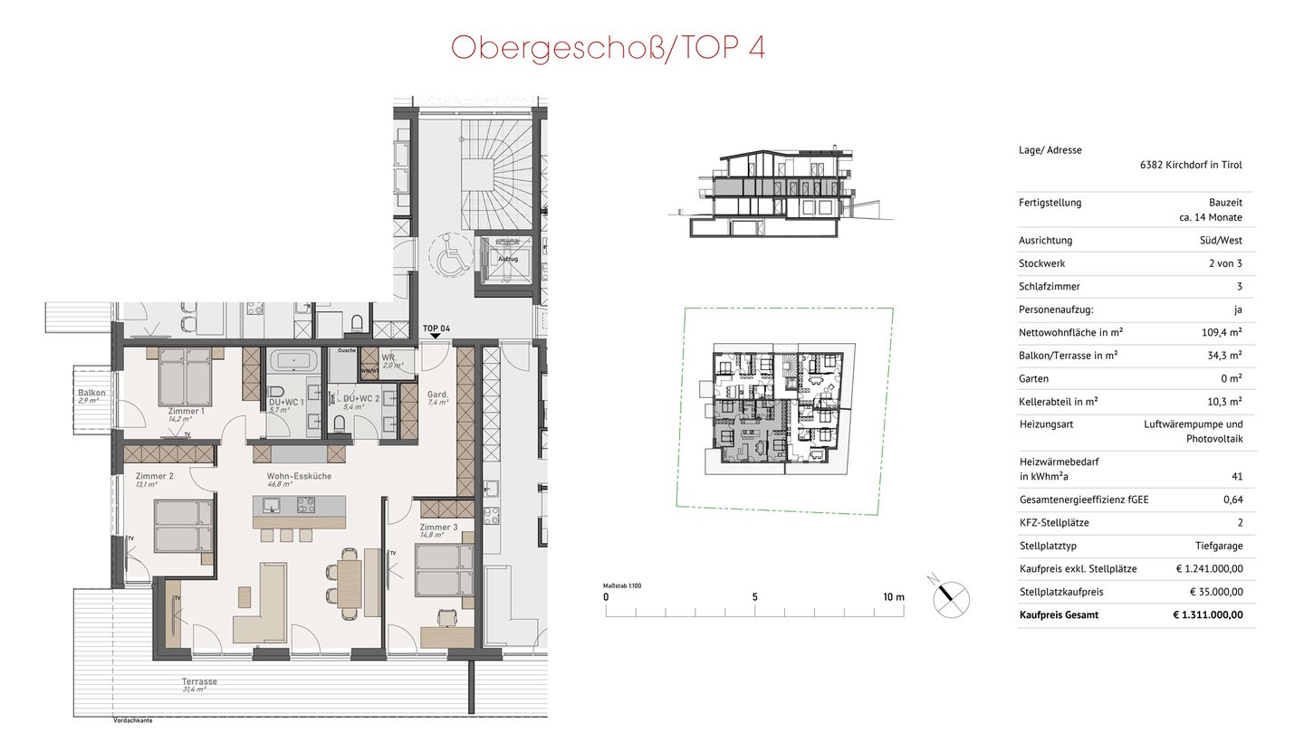+ 1 bis 2 Tiefgaragenstellplätze pro Wohnung inklusive