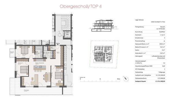 Über die großzügige, hauseigene Tiefgarage gelangen Wohnungseigentümer mittels Lift bequem in alle Etagen. Modernen Anforderungen entsprechend, bieten alle Wohneinheiten schwellenfrein Zugang und garantieren hohen Sicherheitsstandard. Die Bausubstanz des Gebäudes sowie die exklusive Grundausstattung der Wohnungen, entsteht in Zusammenarbeit mit heimischen Professionisten. Im Vordergrund der architektonischen Gestaltung steht die Verbindung aus Mensch und Natur, die sich im Materialeinsatz widerspiegelt.