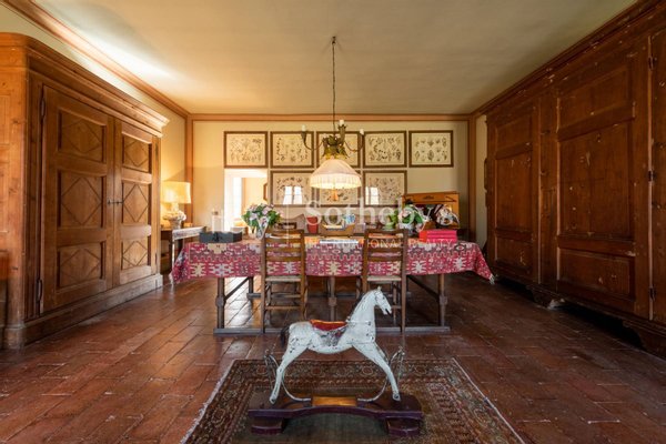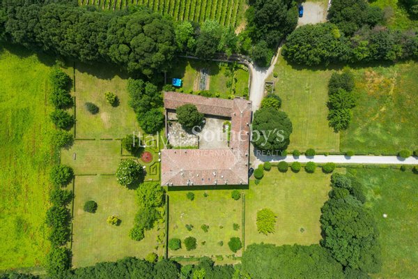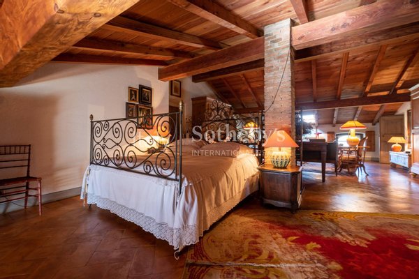 Prächtige historische Residenz aus dem 18. Jahrhundert in der grünen Landschaft der Franciacorta. Das Anwesen besteht aus Gebäuden, die in Form eines C oder in einem offenen Innenhof angeordnet sind, umgeben von einem Park von mehr als 3 Hektar mit Garten, Obstgarten und Wald und ein DOCG Franciacorta Weinberg von drei Hektar in der Produktion. Die strenge Fassade täuscht über eine bezaubernde Atmosphäre des Staunens und der Entspannung hinweg. Der Gebäudekomplex besteht aus dem Herrenhaus, bewohnbaren Cottages, einem weiteren als Lager genutzten Gebäude, einem Orthus-Conclusus-Garten und einem die Gebäude verbindenden Innenhof. Das Hauptgebäude erstreckt sich über drei oberirdische Stockwerke und ist etwa 1000 Quadratmeter groß und besteht aus zwei Immobilieneinheiten mit separaten unabhängigen Eingängen. In Bezug auf Größe und Bedeutung ist es wie folgt verteilt: Im Erdgeschoss finden wir die Vordächer (ca. 300 qm) die Haupträume wie das Esszimmer und Wohnzimmer, die mit Fresken verzierten Gewölbe, die große Küche, mit direktem Zugang zum Keller im Untergeschoss und ein Schlafzimmer mit Bad. Im ersten Stock befinden sich Räume für Schlafzimmer und Badezimmer, aber auch das Arbeitszimmer und das schöne und große Galerie-Wohnzimmer, das zur Außenloggia führt. Der zweite Stock ist über eine Holztreppe erreichbar, das bewohnbare Dachgeschoss ist als Arbeitszimmer-Bibliothek organisiert, mit einem Schlafzimmer, einem Wohnzimmer und einem Badezimmer. Jedes Zimmer im Haus, von den Haupt- bis zu den Servicezimmern, ist fein dekoriert und mit sehr persönlichem Geschmack und Stil eingerichtet. Das Ganze ist elegant und einladend zugleich. Die andere Wohneinheit des Hauptteils, befindet sich im zweiten Stock und wird im anderen Teil des Dachgeschosses bezogen, sie ist unabhängig und kann über die Außentreppe mit Zugang vom Flur erreicht werden und dient als gemeinsamer Eingang zum Eigentum. Die Wohnung besteht aus Wohnbereich, Küche, Hauswirtschaftsraum, Schlafzimmer und Bad und Loggia. Die dreistöckige ländliche Wohneinheit misst ca. 370 m2, zugänglich von der gemeinsamen Eingangshalle, und besteht aus zwei unabhängigen Immobilieneinheiten auf zwei Ebenen, Erdgeschoss und Obergeschoss, mit Küche, Wohnzimmer, Schlafzimmern und Badezimmern. Der letzte Körper des Gebäudes verläuft entlang des Innenhofs des Anwesens und trennt ihn vom ummauerten Garten. Es ist ein ehemaliger Holzschuppen von beträchtlicher Höhe, der derzeit als Lager genutzt wird und durch schöne Holztüren verschlossen ist. Dieser Bereich ist sehr gut an die Hauptstraßen angebunden und bietet dennoch absolute Privacy.