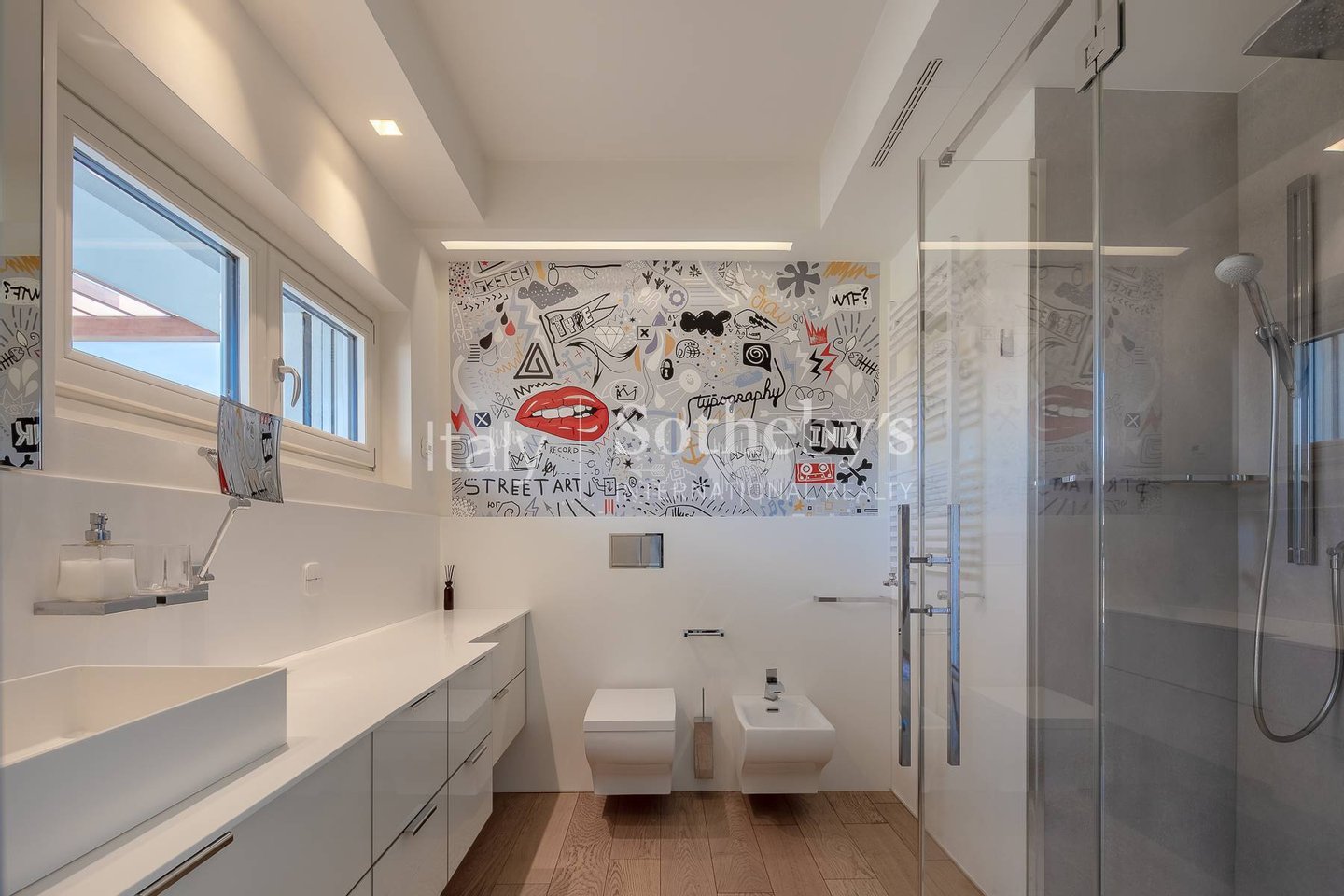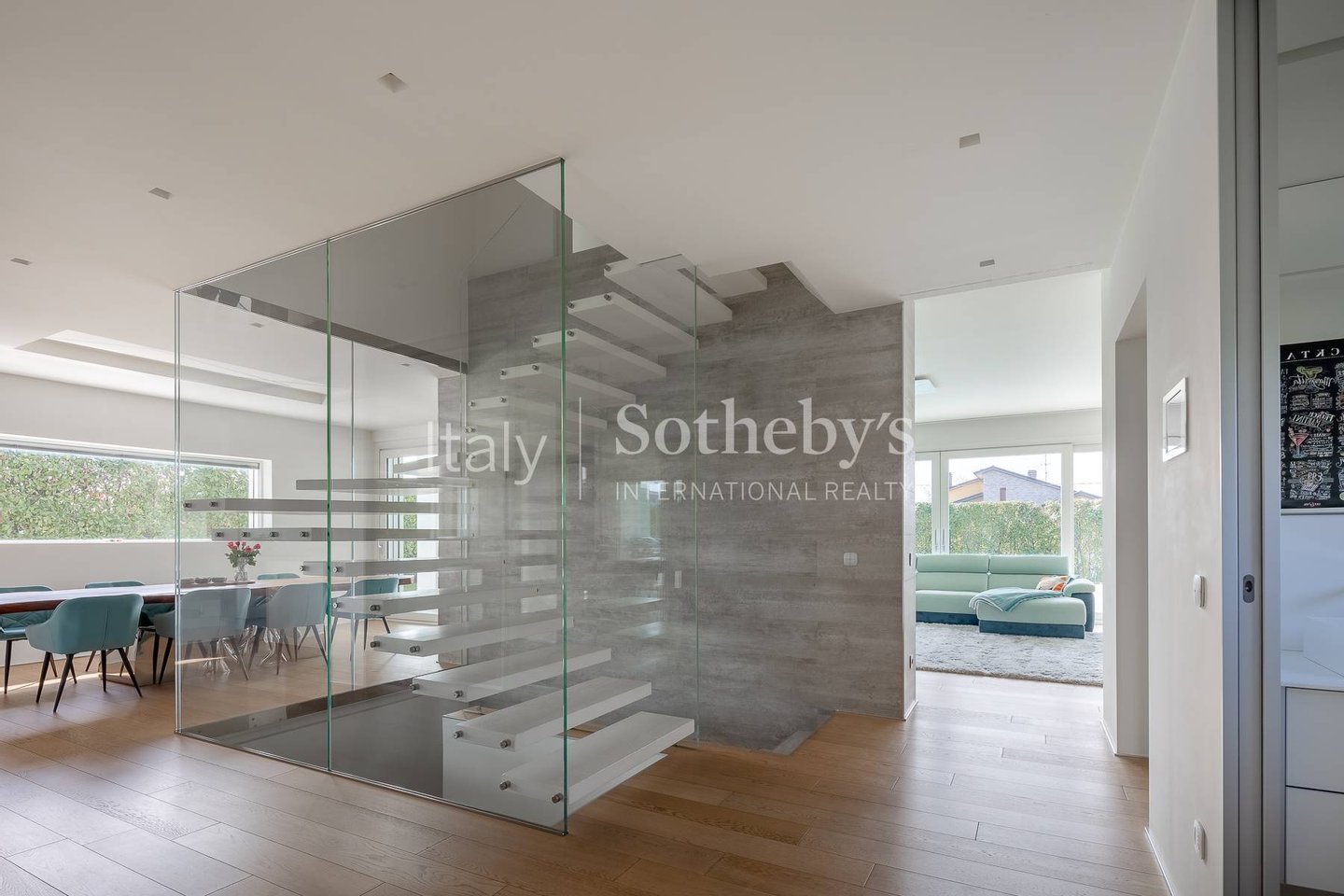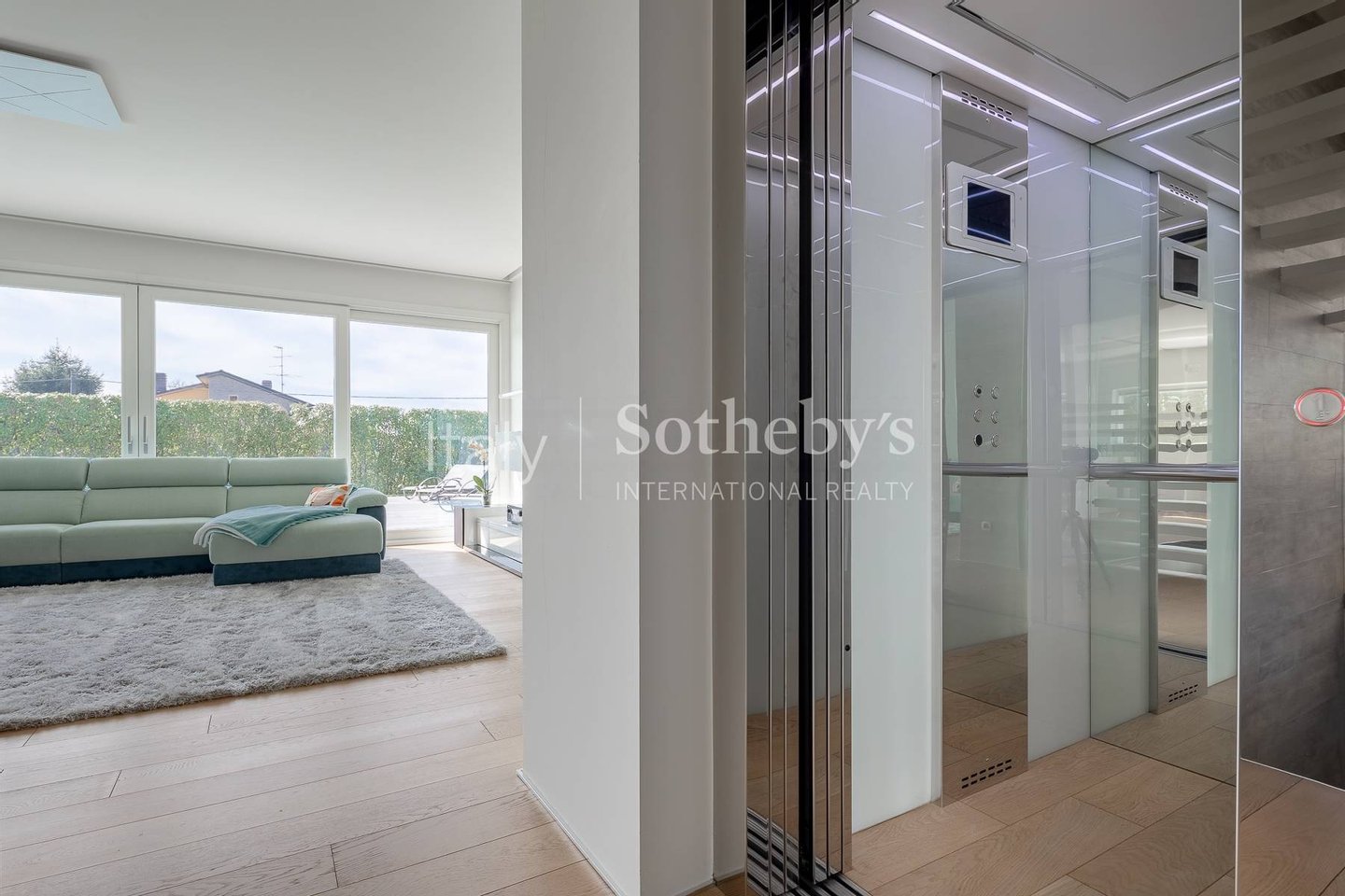 Diese exklusive, ca. 460 m² große Immobilie erstreckt sich über drei Ebenen, die durch einen internen Aufzug verbunden sind, und wurde nach höchsten Standards in puncto Nachhaltigkeit und technologischer Innovation entworfen.