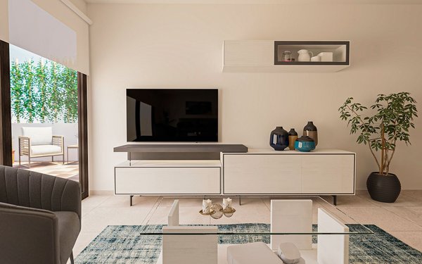 Die hochwertige Ausstattung der Wohnungen beinhaltet PVC- und Aluminiumfenster und -türen mit Doppelverglasung und sogenannten Mallorquinas (Fensterläden), Sicherheitstüren, Sicherheitsgitter in den Erdgeschoss-Wohnungen, Einbauküchen mit Ober- und