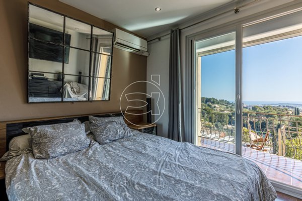 Diese traumhafte Villa von ca. 269 m² auf zwei Etagen, die auf einem Grundstück von 1586 m² errichtet wurde, befindet sich auf den Hügeln von Vallauris in der Nähe von Cannes und Mougins.