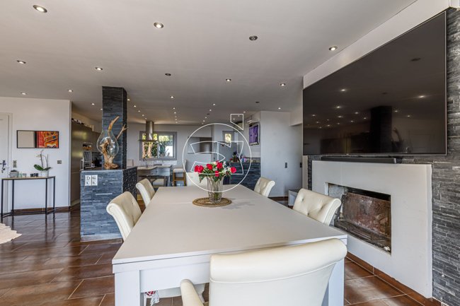 Beheiztes Innenschwimmbad, Sauna. Swimmingpool im Freien. Terrasse mit Jacuzzi, Sommerküche. Keller, Garage, überdachte Parkplätze.
