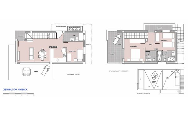 Hier finden Sie moderne Villen die über eine konstruierte Fläche von ca. 168 m² (inklusive Terrassen) verfügen und die folgende Räumlichkeiten bieten: