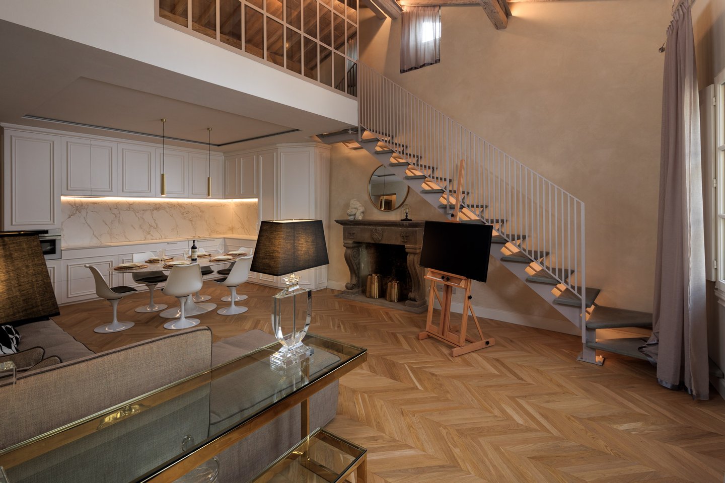 The beautiful Apartment Vigna Nuova is located in the historic center of Florence, on the third floor of a prestigious building; Specifically, this is an elegant apartment with fine finishes organized on two levels with an area of about 120 square