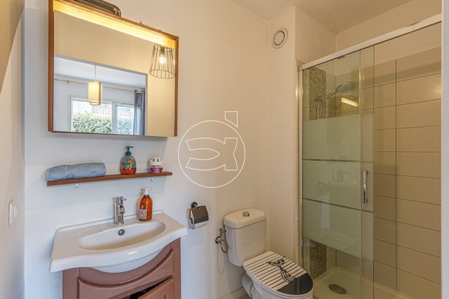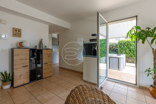Sie besteht aus einer Eingangshalle, einem Wohnzimmer mit Zugang zu einem 215 m² großen Garten mit Terrasse, der nach Süden ausgerichtet ist und viel Licht bietet, einer Küche, einem Hauptschlafzimmer und einem Schlafzimmer mit Duschbad und Toilette.