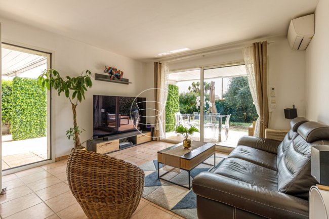 Diese wunderschöne, komplett renovierte Dreizimmerwohnung mit 65 m² Wohnfläche befindet sich im Viertel Basses Bréguières in Antibes.