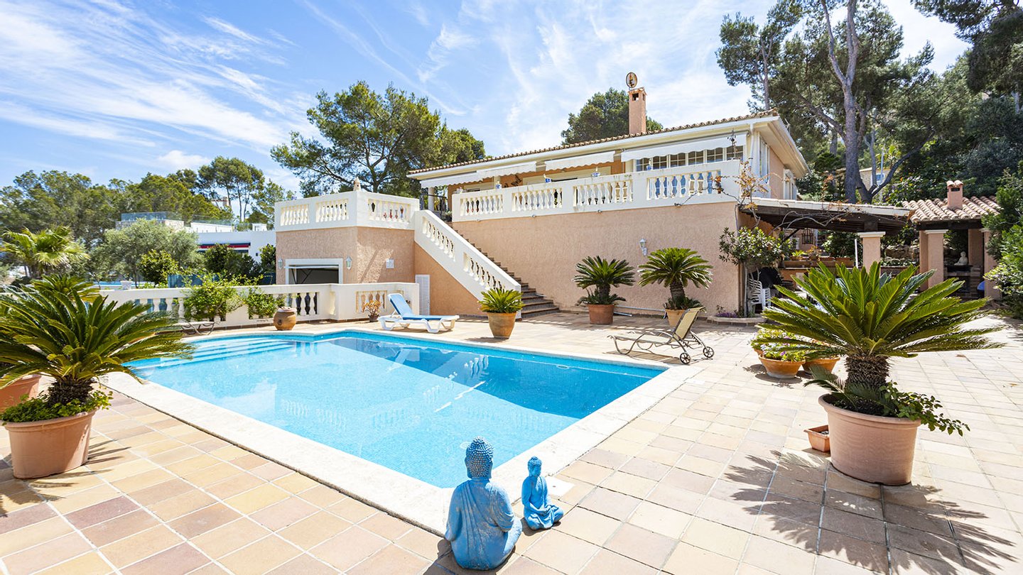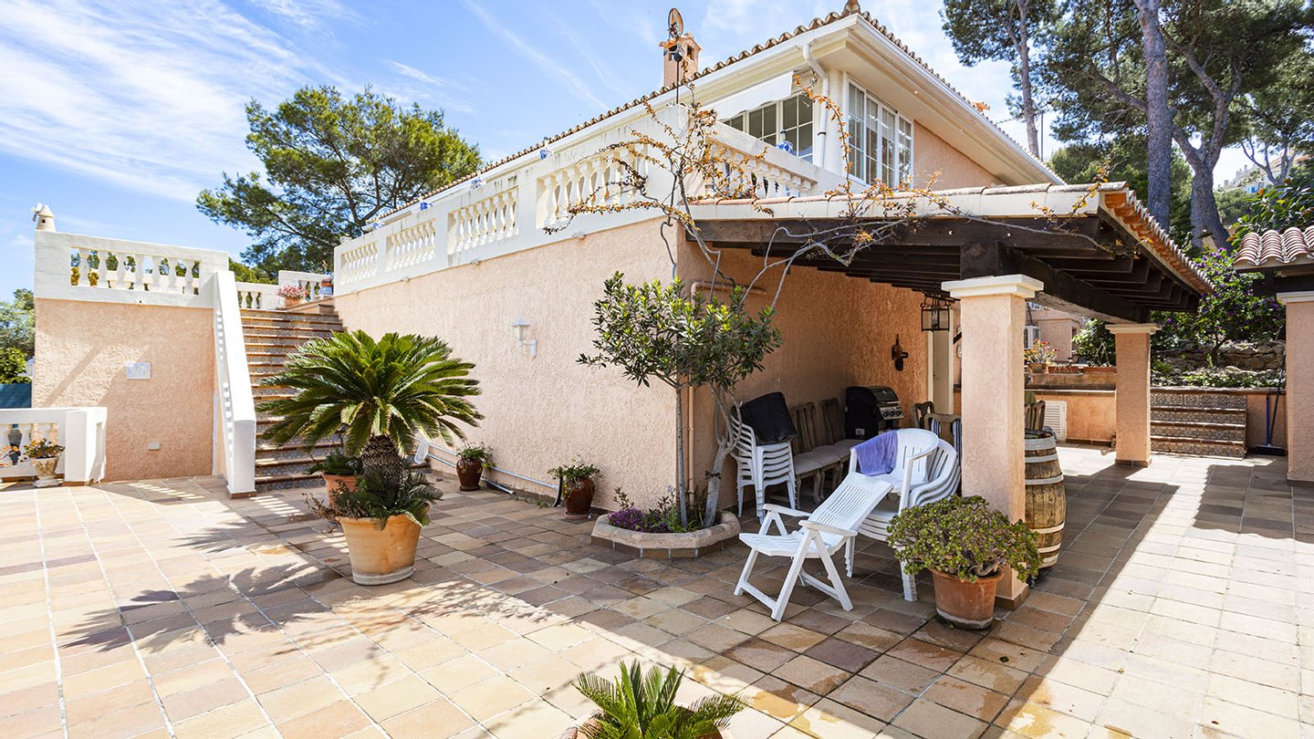 Mallorca Immobilien: Diese charmante Villa mit viel Potenzial befindet sich in Nova Santa Ponsa, im Südwesten der Insel, in der Gemeinde Calviá.