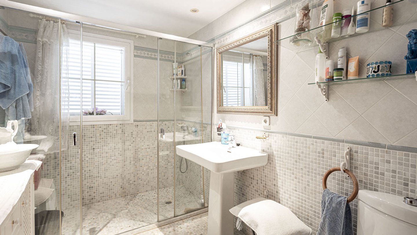 Auf einem ca. 1285 m2 großen Grundstück mit einer Wohnfläche von ca. 460 m2 bietet diese Immobilie viel Platz zum Wohlfühlen. Vom großzügigen Eingangsbereich im Obergeschoss gelangt man in das gemütliche Wohnzimmer mit Kamin und direktem Zugang zur Terrasse mit Panoramablick. Ebenfalls auf dieser Ebene befinden sich ein Essbereich, eine separate Einbauküche mit Elektrogeräten, 3 Schlafzimmer, 2 Bäder, eines davon en suite. Auf der Poolebene im Erdgeschoss verfügt die Villa über ein weiteres Wohn-/Schlafzimmer, ein Bad, einen Abstellraum sowie eine großzügige Garage für 3 PKW. Die Villa in Nova Santa Ponsa besticht vor allem durch ihre Toplage und ihren mediterranen Charme. Der Außenbereich verfügt über einen schönen Pool mit Außenbeleuchtung, eine große Sonnenterrasse mit überdachtem BBQ Bereich und einen gepflegten Garten. Ein weiterer Parkplatz steht auf dem Grundstück zur Verfügung.