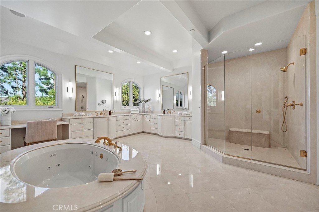 Diese hervorragend modernisierte, rund 7.070 Quadratmeter große, bewachte Bel Air Crest-Residenz präsentiert raffinierte Materialien, exquisite Oberflächen und ein tadelloses Dekor. Ein atemberaubender großer Eingang mit einem Kronleuchter, der von der Kassettendecke der Kathedrale hängt, begrüßt die Gäste in fünf Schlafzimmern mit Bad und sechseinhalb Bädern, die den Inbegriff von Luxus und Eleganz bieten. Genießen Sie die großzügige Küche des Küchenchefs mit Designer-ausgewählten Terminen, High-End-Geräten, maßgefertigten Schränken, einer übergroßen Mittelinsel, einer geräumigen Speisekammer und viel Platz zum Unterhalten. Das formelle Wohnzimmer und Esszimmer sind ideal für große Menschenmengen und intime Zusammenkünfte. Ein beeindruckender Master-Flügel bietet einen Kamin, zwei benutzerdefinierte Clive Christian-Schränke und ein entspannendes Spa-inspiriertes Bad mit Sauna / Dampfbad und Getränkestation. Drei Schlafzimmer mit Bad befinden sich ebenfalls im zweiten Stock und ein Schlafzimmer mit Bad und ein Büro befinden sich günstig im Erdgeschoss. Entdecken Sie ruhige Anlagen, die wunderschön angelegt sind und von einer Außenterrasse, einem Pool und einem Spa hervorgehoben werden. Verpassen Sie nicht die außergewöhnliche Qualität und seltene Schönheit, die in der begehrten bewachten Wohnanlage von Bel Air Crest angeboten wird.