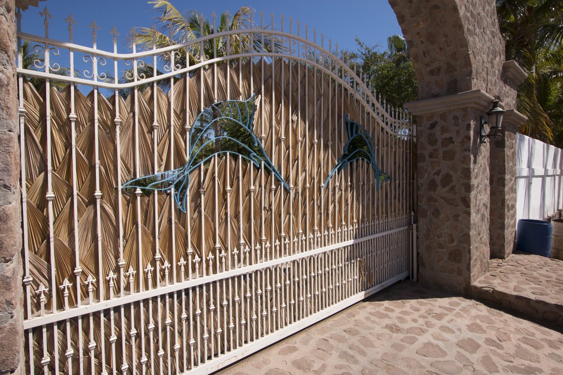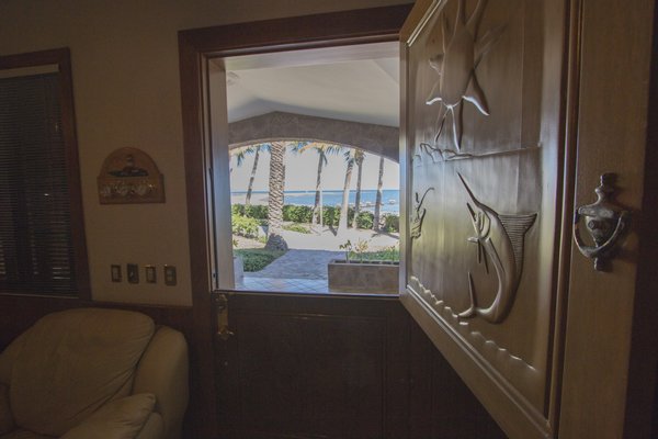 Casa Davison, Loreto, B.C.S. Einst als Flying Sportsman Lodge bekannt, wurde dieses epische Anwesen am Meer, das heute als Casa Davison bekannt ist, sorgfältig restauriert, wobei nur die besten Materialien und Handwerkskunst verwendet wurden. Der umfassende Restaurierungsprozess dauerte über 11 Jahre und es wurden keine Kosten gescheut, um dieses luxuriöse Anwesen am Meer zu schaffen. Die tadellose Liebe zum Detail zeigt sich in diesem atemberaubenden Haus und auf dem gepflegten Gelände. Das 1,32 Hektar (5.346,16 Quadratmeter) große Anwesen liegt direkt am Sandstrand und verfügt über 210 Fuß direkt am Meer mit freiem Blick auf die Insel Carmen und das Meer von Cortez. Das Haus hat auch eine rechtliche Konzession für 14.885,84 (1.382,94 Quadratmeter) Strand in der Bundeszone. Bewohner und Besucher betreten das weitläufige Anwesen durch einen großen Steineingang. Eine hohe Steinmauer umgibt das Anwesen und bietet Sicherheit und Privatsphäre. Wenn Sie den Eingang passieren, erstreckt sich eine von Palmen gesäumte Kopfsteinpflasterauffahrt nach Osten in Richtung des Sea of Cortez bis zum Rand des Grundstücks. Entlang der langen Auffahrt befindet sich ein Gartenbereich mit duftenden Obstbäumen. Auf dem gesamten Grundstück gibt es über 130 reife Palmen, darunter Kokospalmen, Dattelpalmen und Fächerpalmen. Das Haupthaus verfügt über eine geflieste, mit Steinen ausgekleidete überdachte Veranda mit einem breiten Gehweg, der mit handgefertigten Kupferlichtern dekoriert ist. Die umlaufende Veranda im Freien verfügt außerdem über bewegungsaktivierte Sicherheitsleuchten / Alarmsysteme, maßgefertigte Steinpflanzgefäße, die mit einem Tropfbewässerungssystem ausgestattet sind, und eine Stereoanlage im Freien. Der Vordereingang des Hauses hat eine exquisite handgeschnitzte holländische Mahagoni-Eingangstür mit dem gravierten Design eines Segelfisches und Baldwin-Türgriffen aus Messing. Der vordere Eingang wird von zwei großen Vasen geschmückt. Die übergroße Eingangstür öffnet sich in ein komfortables, lichtdurchflutetes Wohnzimmer mit einem großen Steinkamin und herrlichem Blick auf das Meer von Cortez. Das Wohnzimmer verfügt über eine 2-Tonnen-Klimaanlage, Sat-TV (Shaw) und das Haupthaus ist mit Highspeed-Glasfaser-Internet ausgestattet. Die eloxierten Aluminiumfenster im ganzen Haus bestehen aus maßgefertigtem Low-E-Doppelscheibenglas mit handgefertigten Mahagoni-Fensterrahmen und bedienbaren Bildschirmen, um die frische Meeresbrise hereinzulassen. Die Küche verfügt außerdem über eine maßgefertigte handgeschnitzte holländische Mahagonitür mit offenem Grundriss und maßgefertigten handgefertigten Mahagonischränken, einer Edelstahlhaube für einen mit Mahagoni bedeckten Herd, Marmorarbeitsplatten und Spritzschutz, Whirlpool-Geräten (Kühlschrank, Gefrierschrank, Mikrowelle, Geschirrspüler und Eismaschine) und 2-Tonnen-Klimaanlage. Die handgefertigten Mahagonischränke bieten reichlich Stauraum. Casa Davison wird schlüsselfertig verkauft. Alle Küchengeräte (Kaffeekanne, Waffeleisen, Fritteuse, Mixer, Toaster, Vakuumierer usw.), Service für 16 Besteck-/Bestecksets, Steakmesser, Geschirr, Glaswaren, Tupperware, Grillutensilien, Kochzubehör und Service für 16 Porzellan-Set sind inklusive. Angrenzend an die Küche befinden sich ein eingebauter Spirituosenschrank und ein Mahagoni-Schreibtisch. Das Haupthaus verfügt über zwei Master-Suiten mit weitem Blick auf das Meer von Cortez. Beide Master-Suiten verfügen über Kingsize-Betten mit hochwertiger Bettwäsche, ein eigenes Bad mit Marmorfliesen und Messingarmaturen sowie hochwertige Handtücher. Beide Master-Suiten verfügen über große, handgefertigte, maßgefertigte begehbare Kleiderschränke, individuelle Klimaanlagen (eine 3-Tonnen-Klimaanlage und eine 2-Tonnen-Klimaanlage) und hohe Decken mit Deckenventilatoren. Eines der Hauptschlafzimmer verfügt außerdem über einen großen privaten Abstellraum für zusätzliche Vorräte und einen Weinkühler. Alle Möbel, Kunstwerke, Bettwäsche und zwei Sätze von Mr. Davisons Golfschlägern sind im Verkauf enthalten Casa Davison verbindet Innen- und Außenbereiche nahtlos für ein luxuriöses Wohnerlebnis am Meer. Beobachten Sie den Sonnenaufgang über der Insel Carmen und dem Meer von Cortez von Ihrem Grill- und Unterhaltungsbereich im Freien aus. Der handgefertigte Steingrill im Freien verfügt über einen verstellbaren Propangrill und zwei Holzkohlegrills. Angrenzend an den Grill befindet sich ein Waschbecken im Freien. Der großzügige Außenbereich eignet sich für Partys im Freien oder besondere Anlässe wie Hochzeiten oder kleine intime Zusammenkünfte. Angrenzend an das Haupthaus befindet sich ein 432 Quadratmeter großes, handgefertigtes, maßgefertigtes Spa mit Betonfliesen, das mit dem gleichen maßgefertigten Mauerwerk dekoriert ist, das im gesamten Anwesen zu finden ist. Das Spa verfügt über Bodenblasen, Sitzblasen und Düsen an allen Wänden mit zwei Lichtern. Das Spa verfügt über eine 5.000-btu-Heizung und wird mit Propangas betrieben. Ein zusätzliches Backup-Luftgebläse ist im Lieferumfang enthalten. Der Spa-Bereich verfügt über ein Palapa-Dach und maßgefertigtes Mauerwerk. Die Spa-Ausstattung befindet sich hinter den Gästebungalows, zusammen mit einem sehr großen Abstellraum im Freien, der sich perfekt für die Aufbewahrung von Fahrrädern, Paddleboards, Kajaks, zusätzlichen Gartenmöbeln usw. eignet. Am östlichen Rand des Anwesens, mit Blick auf den Sandstrand, befindet sich ein großer zweistöckiger Strandturm, der aus dem gleichen Mauerwerk gefertigt wurde, das auf dem gesamten Grundstück zu finden ist. Die Aussicht auf das Meer von Cortez aus der zweiten Etage ist atemberaubend. Dies ist ein perfekter Ort für ruhige Kontemplation, Morgenkaffee oder Unterhaltung von Gästen. Die Suite der Gästebungalows befindet sich hinter dem Haupthaus und wurde so konzipiert, dass sie die Privatsphäre und den Komfort maximiert. Jedes