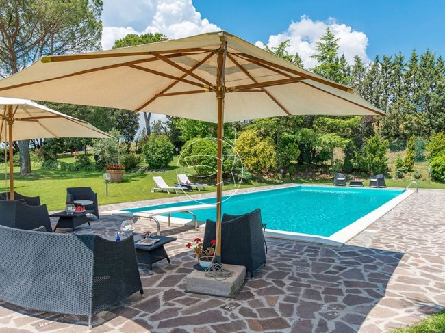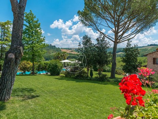 Der wundervolle Garten, der das Anwesen harmonisch umgibt, beherbergt einen herrlichen Swimmingpool, der ideal ist, um die entspannende Atmosphäre zu genießen und sich an heißen Sommertagen abzukühlen.
