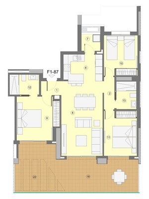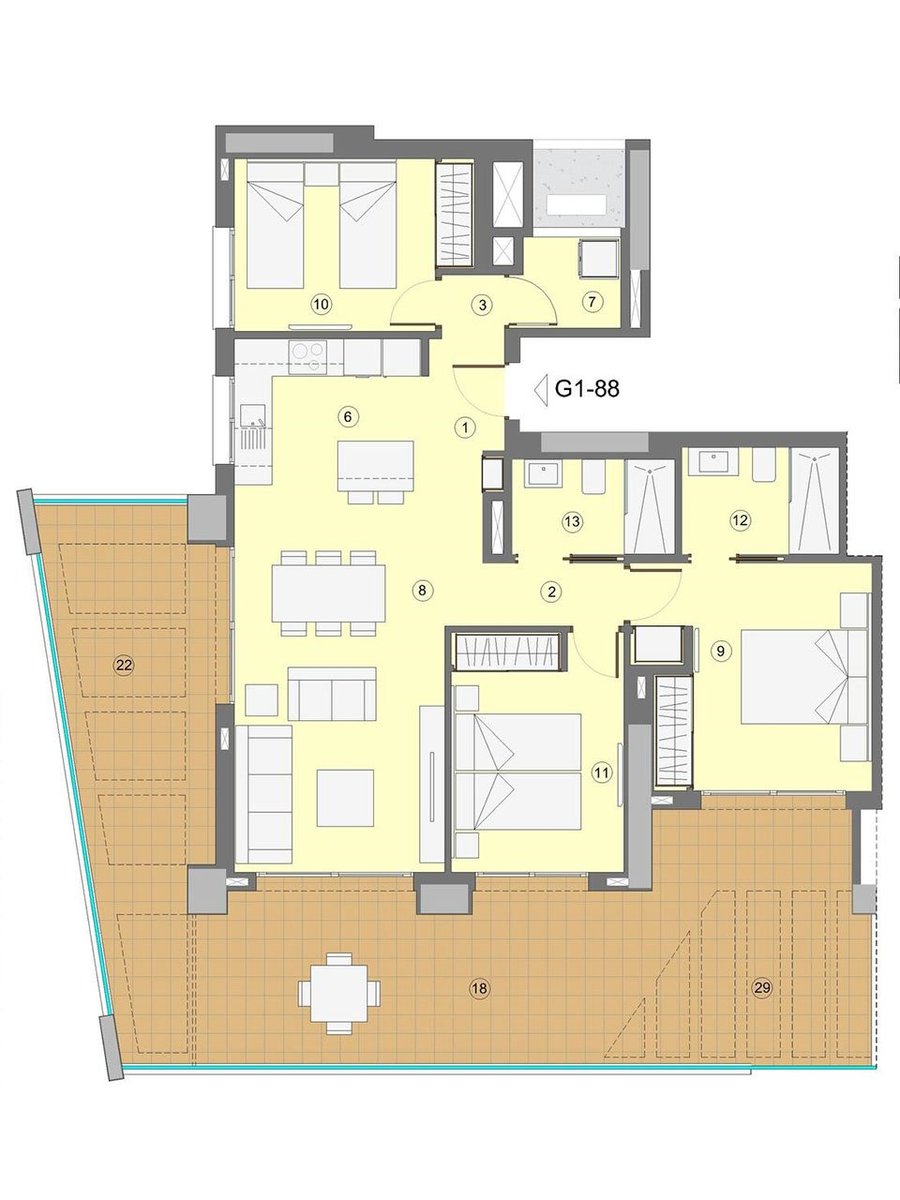Diese fantastischen Wohnungen verfügen über eine konstruierte Fläche von 118 m² - 156 m² (verschiedene Modelle, inklusive Terrassen) mit