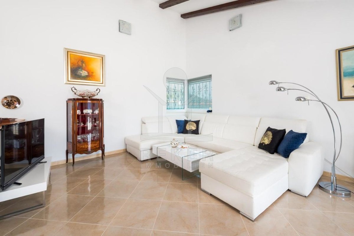 Freuen Sie sich nicht nur auf ein attraktiv eingerichtetes Interieur, sondern auch auf den fantastischen Pool, den gepflegten, mediterran bepflanzten Garten und die bewundernswerte Außenküche mit mediterranem Steingrill.